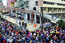 Dezenas de pessoas foram resgatadas com vida dos escombros e os bombeiros, auxiliados por populares, lutavam ontem à noite para tentar chegar a mais sobreviventes encurralados debaixo dos edifícios derrubados.