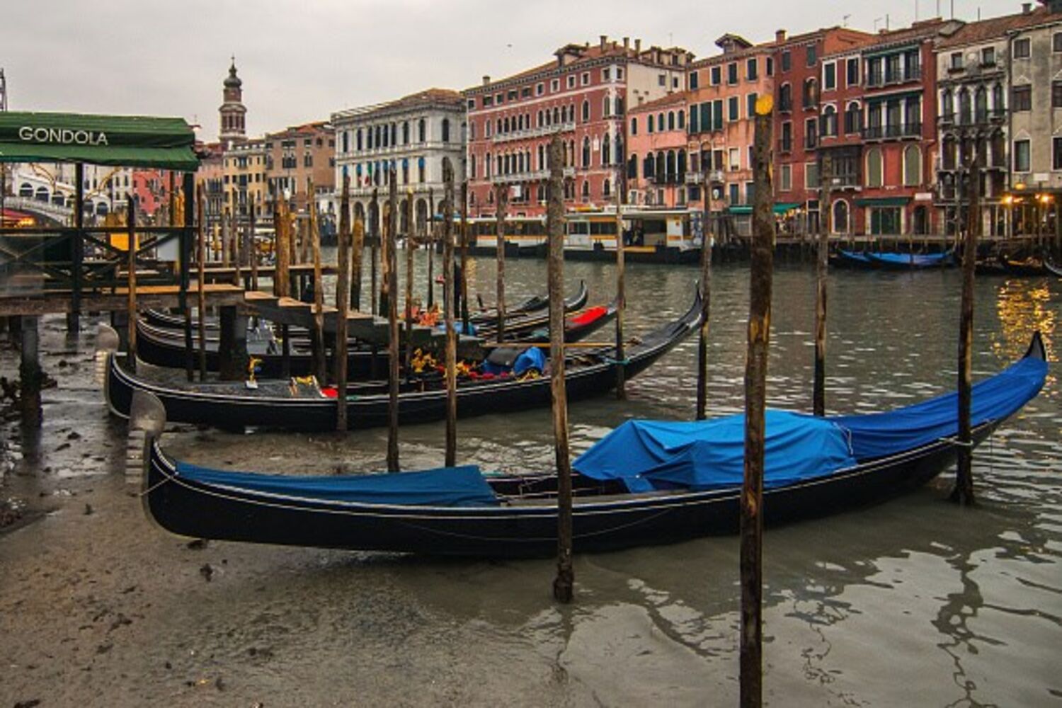 Habitantes e turistas depararam-se com um cenário caricato quando o leito dos canais foi exposto e as gôndolas, principais veículos de transporte no local, ficaram encalhadas.