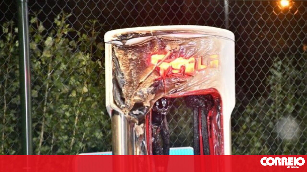 O carro ficou totalmente destruído, assim como o posto de carregamento que acabou por ser consumido pelas chamas.