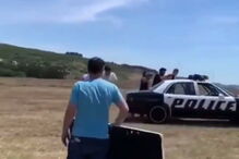 Veículo teve de ser submerso num tanque de água.