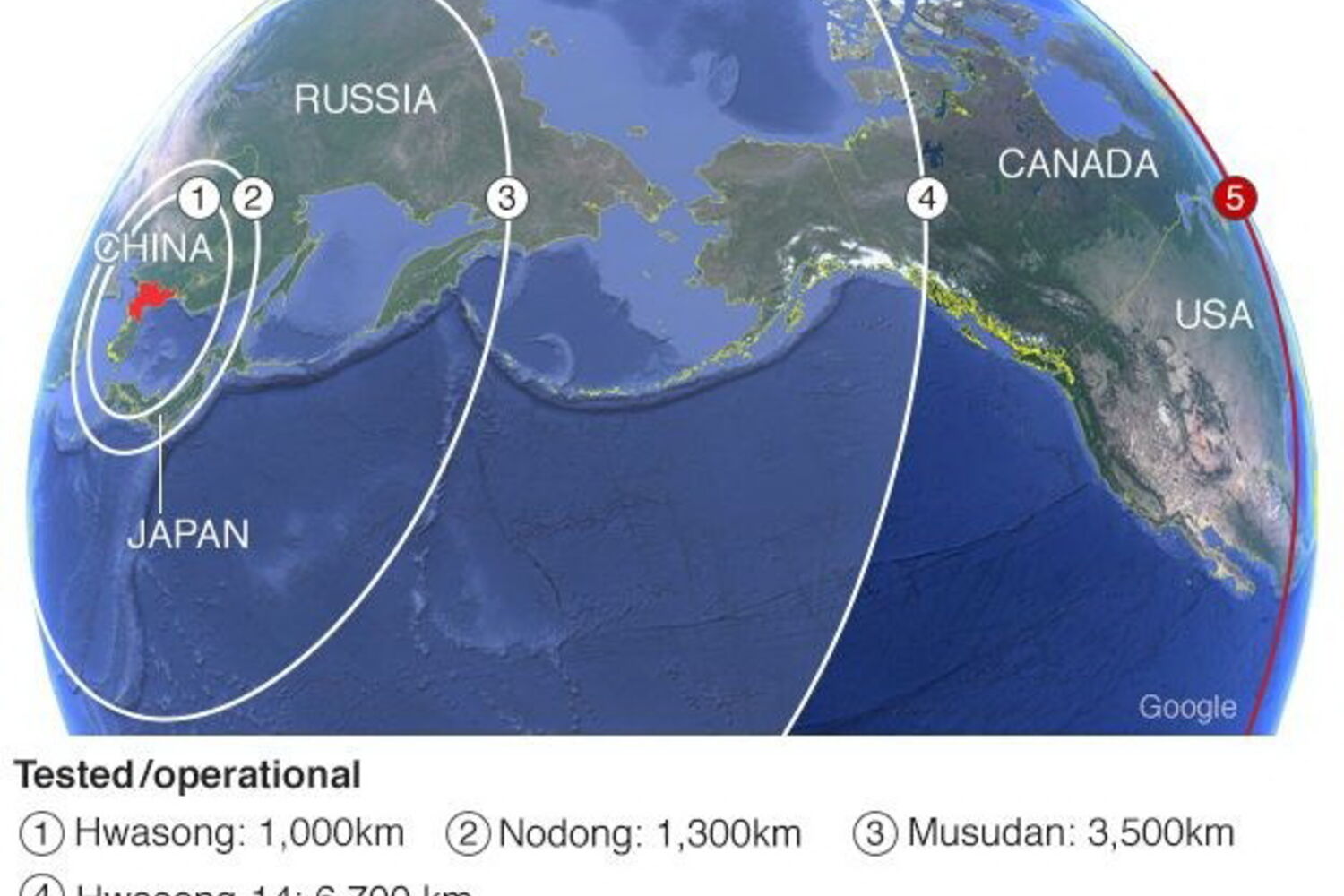 A agência Reuters cita fontes militares americanas que expressam a sua preocupação com a evolução da capacidade bélica da Coreia do Norte. Especialistas admitem que os mísseis intercontinentais coreanos já conseguiriam atingir todo o território americano. O trajeto dos mísseis intercontinentais leva-los-ia a entrar em território americano pela costa oeste, mas estas armas têm alcance para chegar à costa ocidental e atingir cidades como Chicago ou Denver.