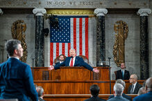 No seu primeiro discurso sobre o Estado da União perante o Capitólio, Trump afirmou que a continuidade das tarifas globais que impôs recentemente significa que "não será necessária nenhuma ação do Congresso".