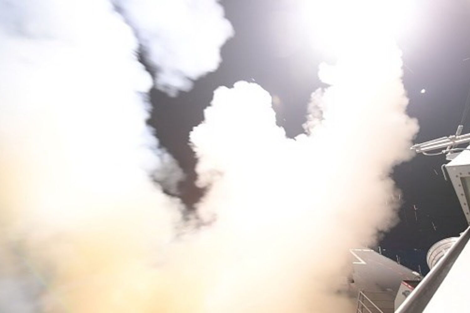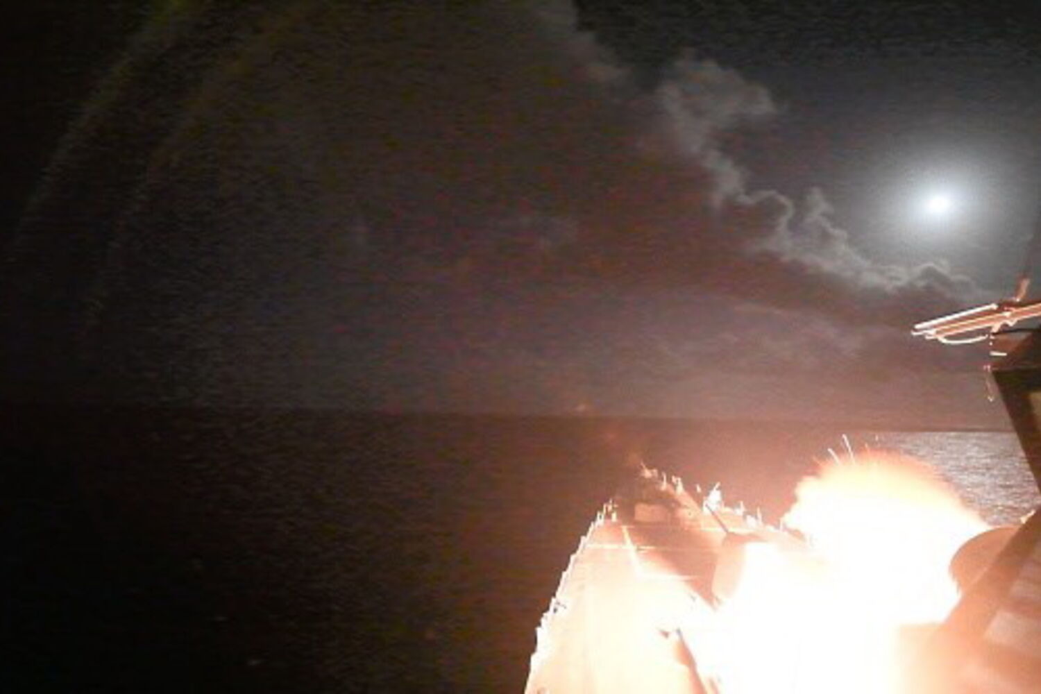 Foram disparados mais de 50 mísseis de dois navios de guerra norte-americanos a partir do Mar Mediterrâneo. A imprensa local confirmou o ataque e a existência de vítimas mortais, bem como de danos materiais. O Observatório Sírio adianta que a base ficou totalmente destruída, depois de ter sido consumido por um incêndio durante mais de uma hora.