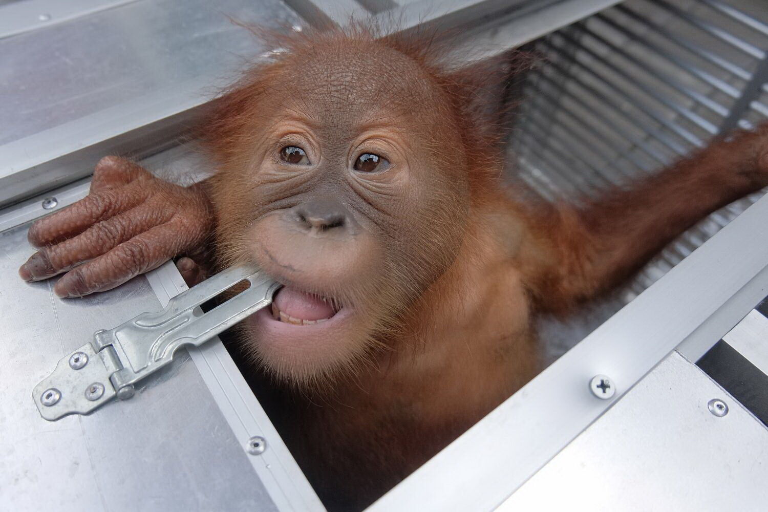 Os policias encontraram um orangotango masculino de dois anos dentro da mala, a dormir profundamente, bem como duas lagartixas vivas e cinco lagartos.