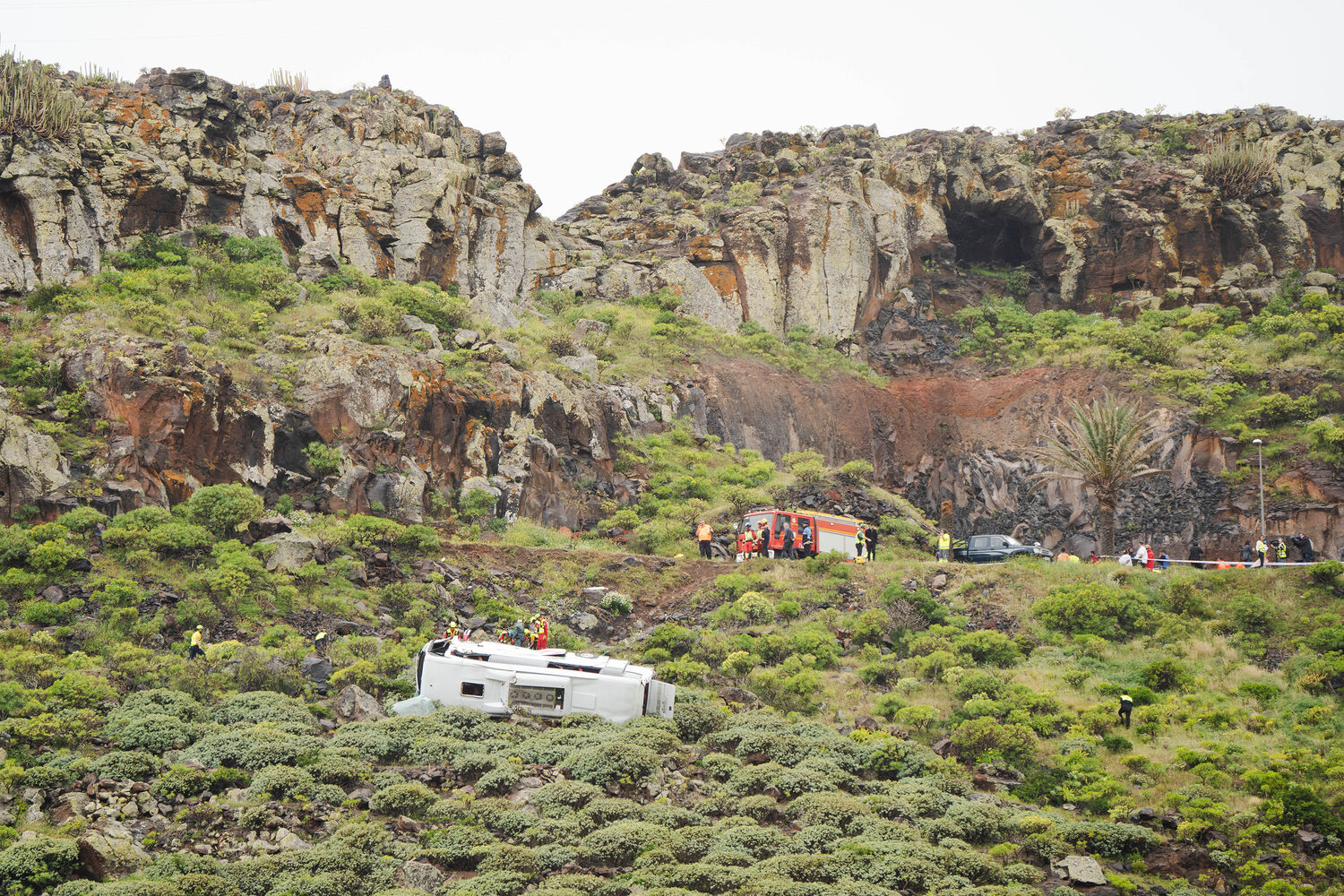 O autocarro saiu da estrada por onde seguia e caiu por uma encosta, segundo os serviços de emergência regionais das Canárias (112 Canárias), que divulgaram imagens do veículo tombado.