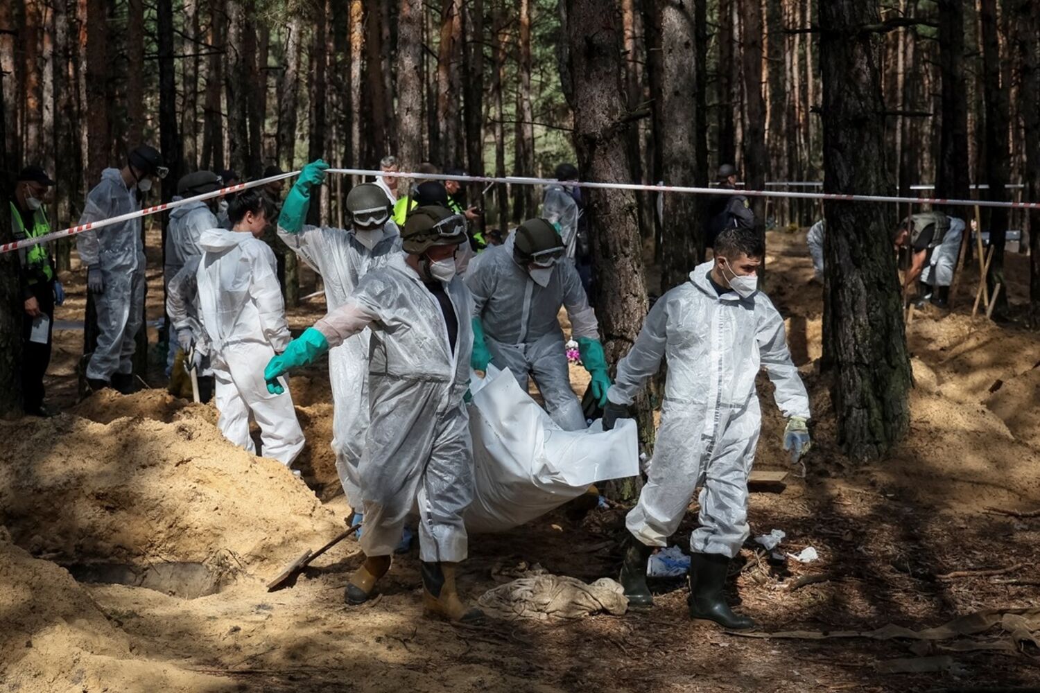 Dos 440 cadáveres exumados, muitos foram encontrados de mãos amarradas, incluindo corpos de crianças. À semelhança do ocorrido em Bucha, nos arredores de Kiev, perante as fortes suspeitas de terem sido cometidos crimes de guerra, o Alto Comissariado dos Direitos Humanos da ONU anunciou que irá enviar “em breve” uma equipa de investigadores à cidade de Izium, “de forma a identificar as circunstâncias da morte dessas pessoas”. Sobre os recentes avanços da contraofensiva ucraniana, Vladimir Putin garante que a Rússia continuará a lutar pela “libertação” da região do Donbass.