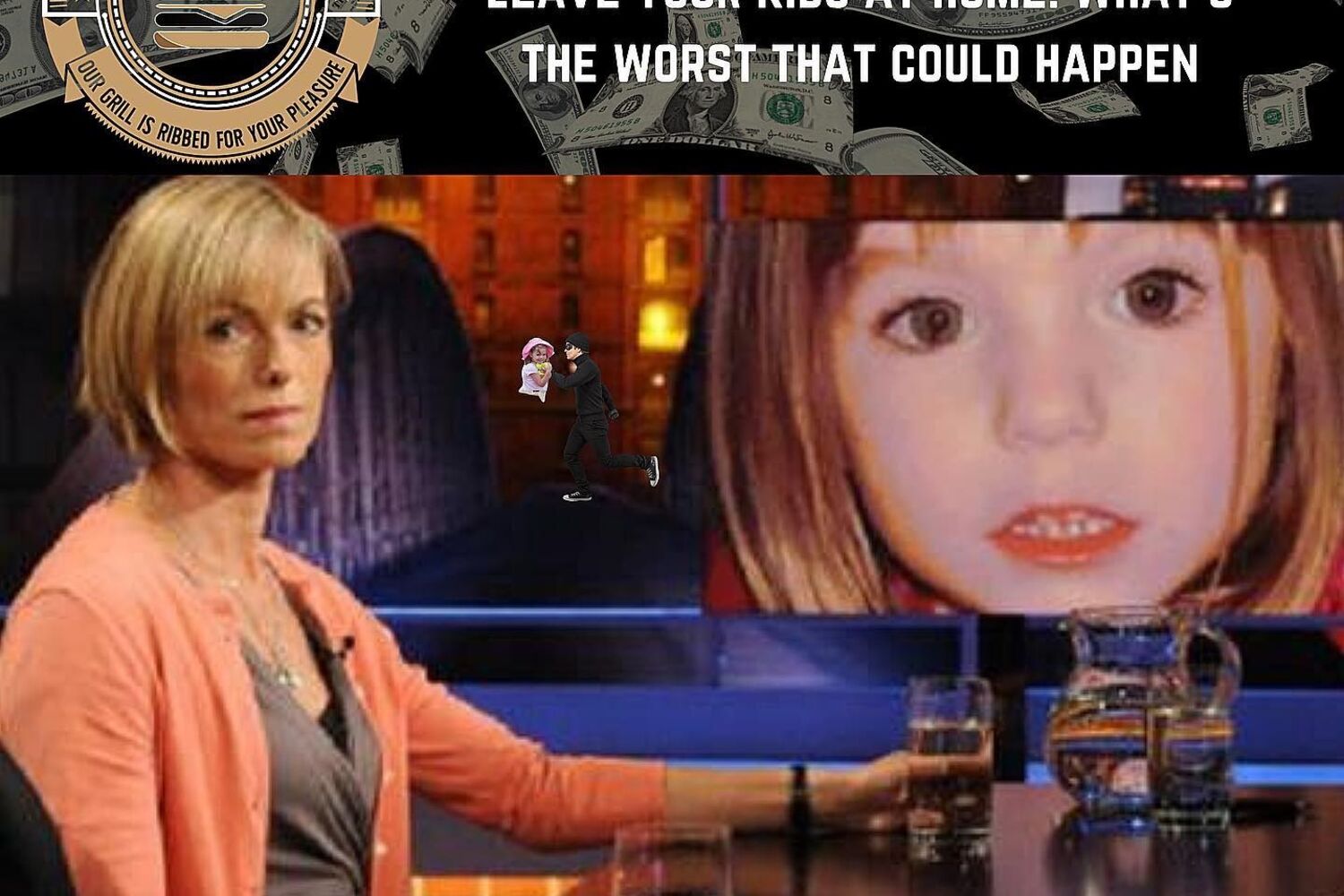 Na página oficial de Facebook, a propósito do dia da mãe, celebrado no Reino Unido em março, o restaurante sugeriu "hambúrgueres para o jantar" de todas as mães e, numa montagem, mostra Kate McCann sentada à mesa, com uma foto da filha, a menina inglesa que desapareceu na Praia da Luz, no Algarve, em 2007, ao lado.