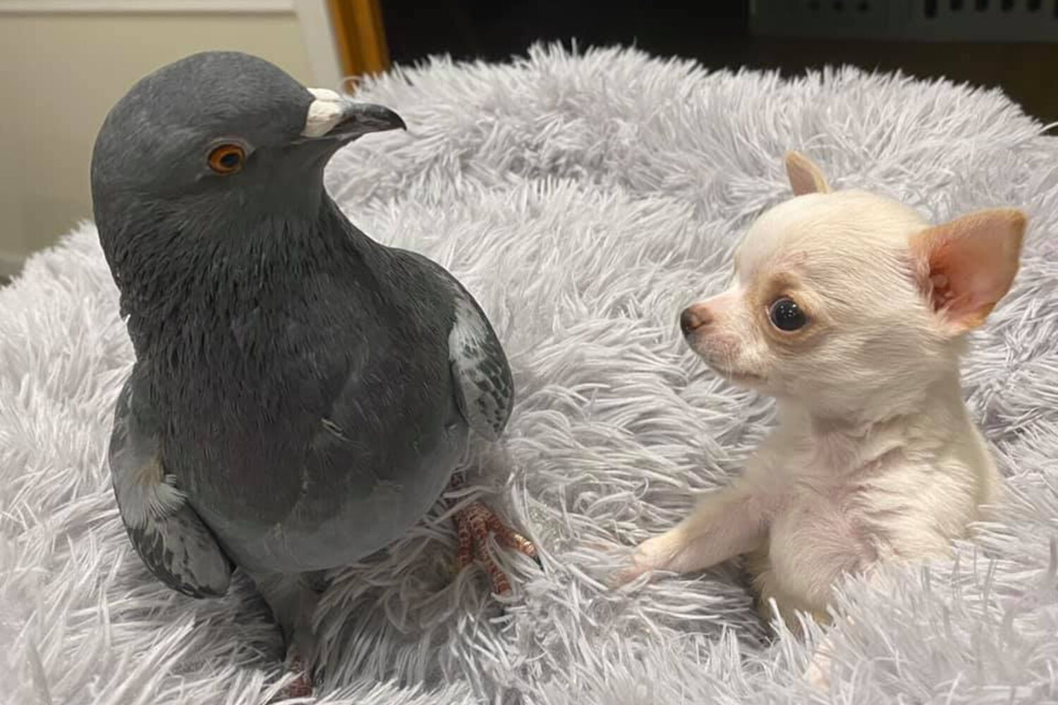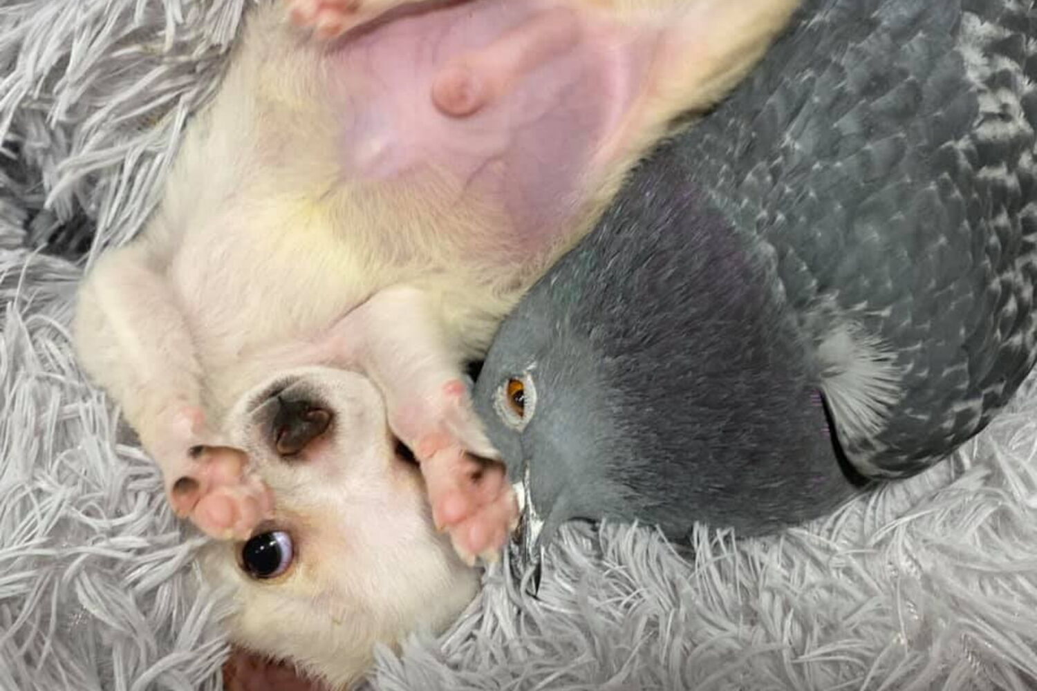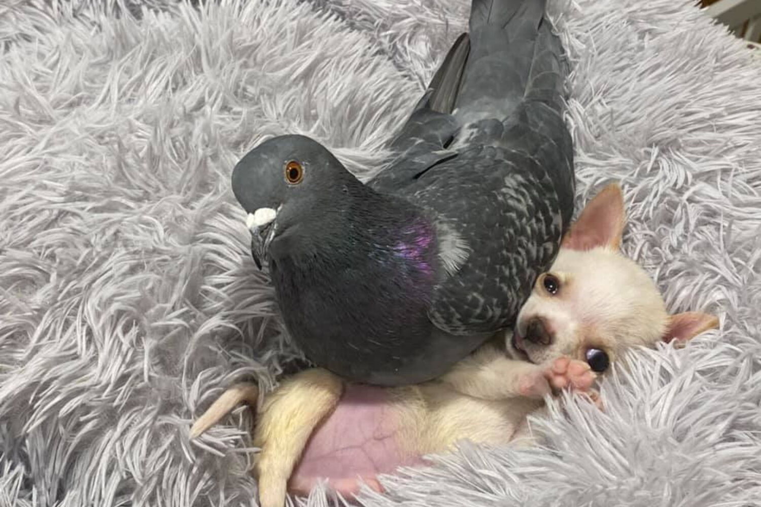 Uma amizade improvável. É desta forma que se pode caracterizar a relação que Lundy, um cão de dois meses que não consegue andar, desenvolveu com Herman, um pombo que não consegue voar.
