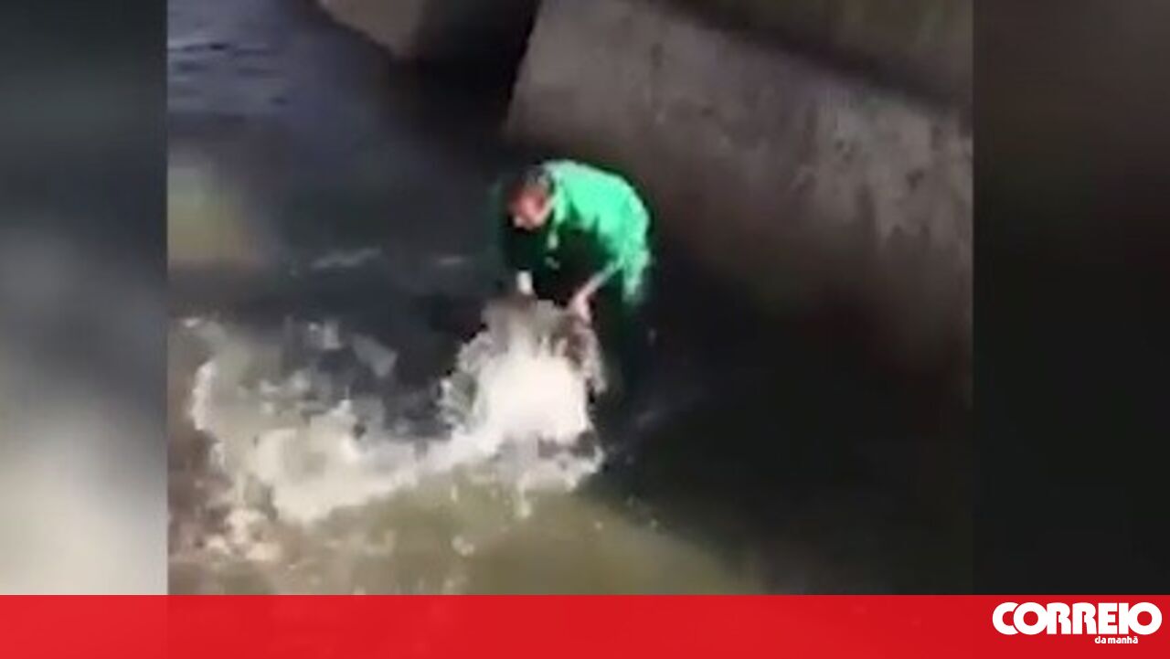 Nas imagens, é possível ver um indivíduo, ainda não identificado, a afogar intencionalmente o animal, que tinha ficado preso num canal de rega.