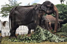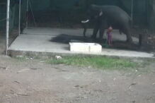 Animal acabou por cair dentro de um lago, no Sri Lanka.