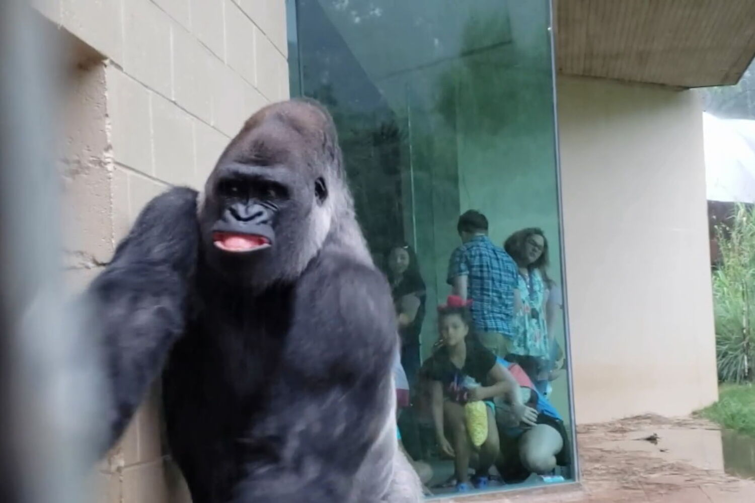 O vídeo foi gravado num dia em que começou a chover intensamente, no início do mês de maio. A Brooke Hunsinger decidiu captar o momento em que os gorilas se refugiam numa zona protegida da chuva, perto dos vidros de observação do público.