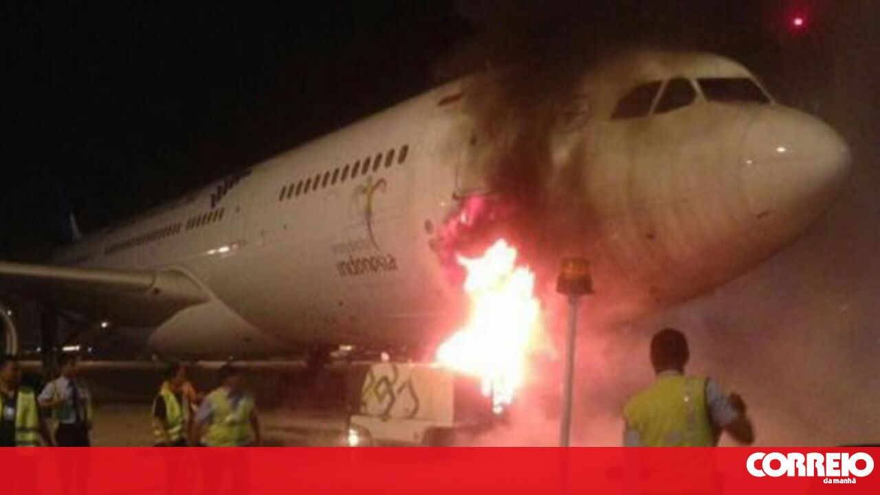 Os funcionários do aeroporto estavam a colocar energia no Airbus A-330 da Garuda Indonesia quando este equipamento começou a arder.