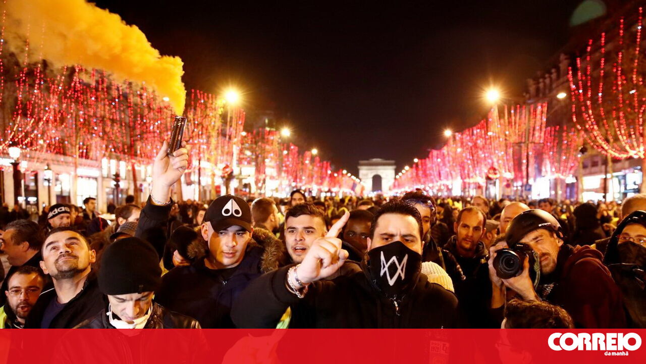 Vídeos partilhados nas redes sociais mostram momentos de tensão e violência entre "coletes amarelos" e a polícia, este sábado, em Paris, França. Nas imagens é possível ver um agente a puxar da arma e a apontá-la aos manifestantes enquanto um colega levantava a sua mota.