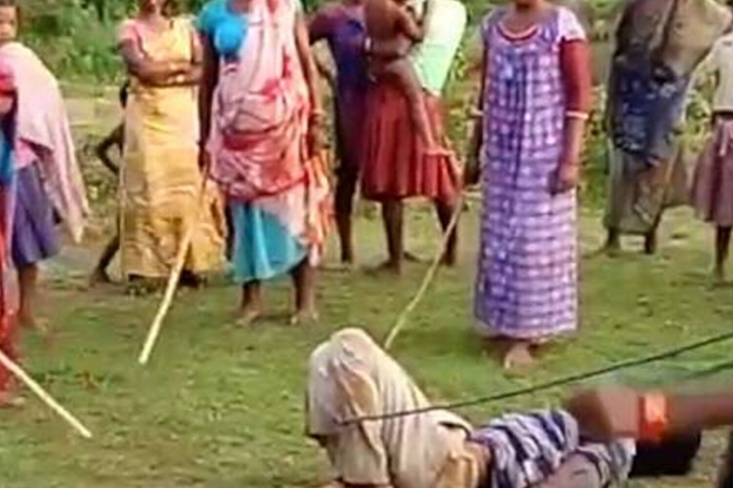 Um homem foi espancado por mulheres na Índia depois de ser acusado de abusos sexuais a crianças.