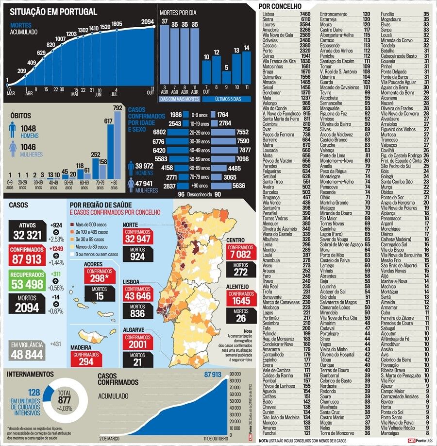 Manuel Heitor testou positivo no domingo. Está em casa e não apresenta sintomas. O contágio pode ter ocorrido a 2 de outubro, quando o ministro esteve em Évora, num evento, com uma pessoa que acusou positivo a 6 de outubro. Após saber do caso, Manuel Heitor fez o teste, que deu negativo. Antes de conhecer o resultado, ficou em isolamento profilático e informou o Parlamento. Por essa razão, a 7 de outubro, na Comissão de Educação e Ciência, foi inquirido pelos deputados via Skype.Conhecido o teste negativo, Manuel Heitor esteve na reunião do Governo de dia 8. No sábado, esteve em Óbidos, na apresentação da ‘Coleção Ciência & Conhecimento’, onde discursou sem máscara. Conhecida a infeção do ministro, o presidente da câmara, Humberto Marques, e quatro funcionários da câmara, vão manter-se resguardados.Esta segunda-feira, a DGS registava mais 1249 infetados e 14 mortos. Foi o quinto dia com mais casos desde o início da pandemia.