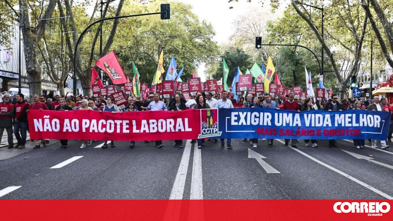 Os candidatos presidenciais Catarina Martins, António Filipe e Jorge Pinto, apoiados respetivamente por BE, PCP e Livre, juntaram-se este sábado à marcha nacional convocada pela CGTP manifestando-se contra o pacote laboral do Governo PSD/CDS-PP e solidários com os trabalhadores.
