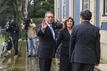 O primeiro-ministro, Luís Montenegro, assim como os presidentes do Tribunal Constitucional e do Supremo Tribunal de Justiça são encaminhados ao Salão Nobre do parlamento, onde António José Seguro, acompanhado exclusivamente por José Pedro Aguiar-Branco, recebe cumprimentos.