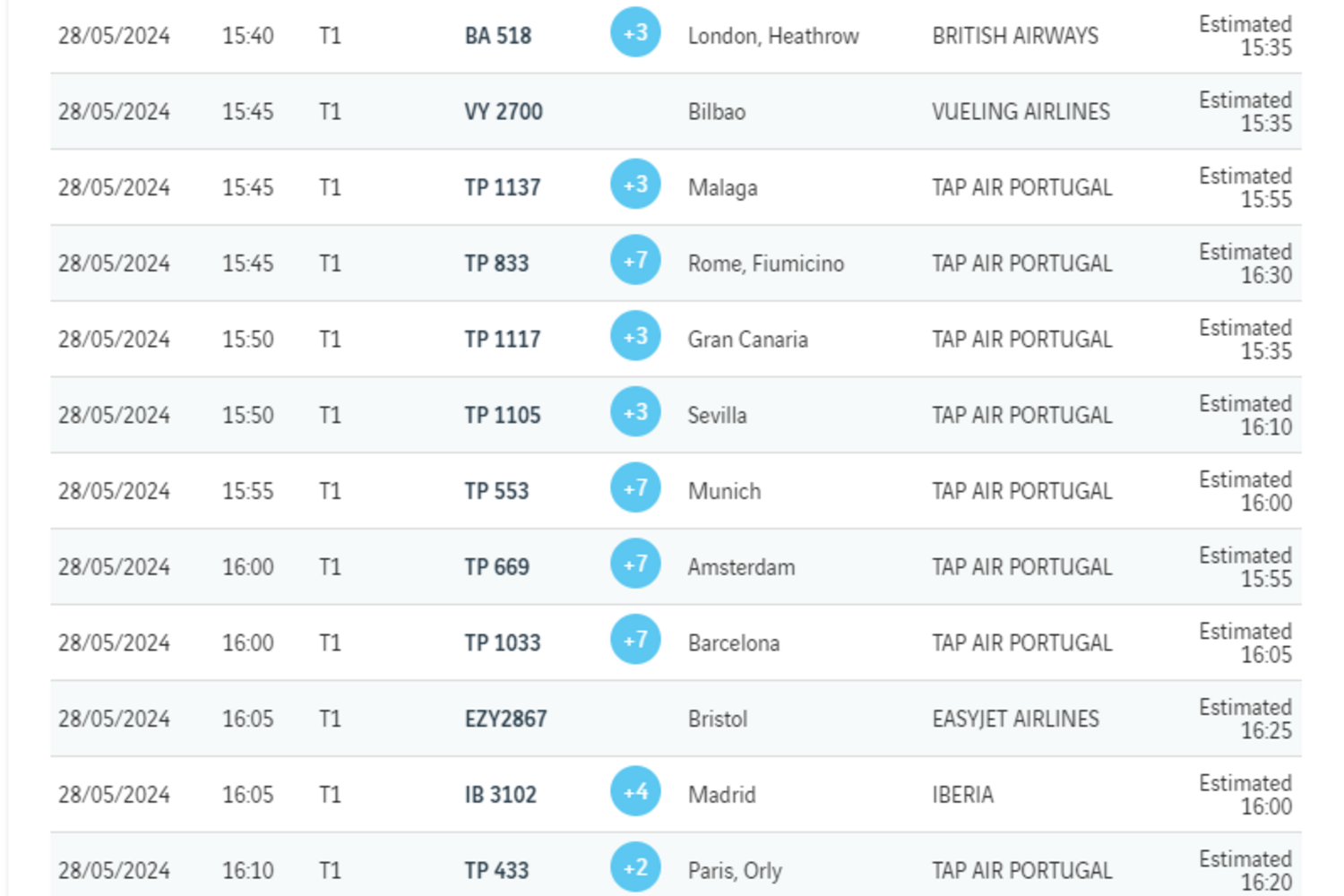 De acordo com as comunicações da torre de controlo do aeroporto de Lisboa, perto de uma dezena de aeronaves mantêm-se às voltas em toda a zona do aeroporto.