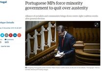 O derrube do Governo PSD/PP pelos partidos de esquerda no parlamento português chegou à imprensa britânica, que, sem ser em primeira página, adjectivou a aliança como "sem precedentes", "histórica" ou "improvável e faz comparações com a Grécia.