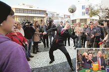 Ex-reitor mostrou talento nos matraquilhos.