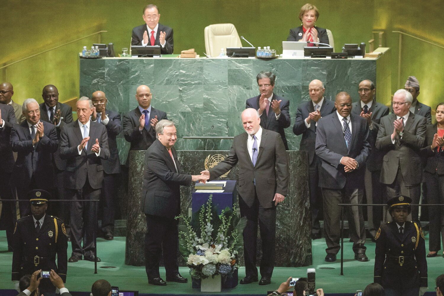 "É hora de os dirigentes ouvirem e mostrarem que se importam com os seus povos, com a estabilidade e com a solidariedade de que todos dependemos", continuou o antigo primeiro- -ministro. Para o português, "muitos perderam a confiança nos seus governos mas também nas instituições globais, como as Nações Unidas". Por isso, "chegou a hora de reformar a forma como a ONU trabalha". Guterres quer uma "reforma integral", que inclui a introdução de critérios de avaliação na organização que vai dirigir durante cinco anos a partir de 1 de janeiro. "Mais pessoas e menos burocracia", prometeu.