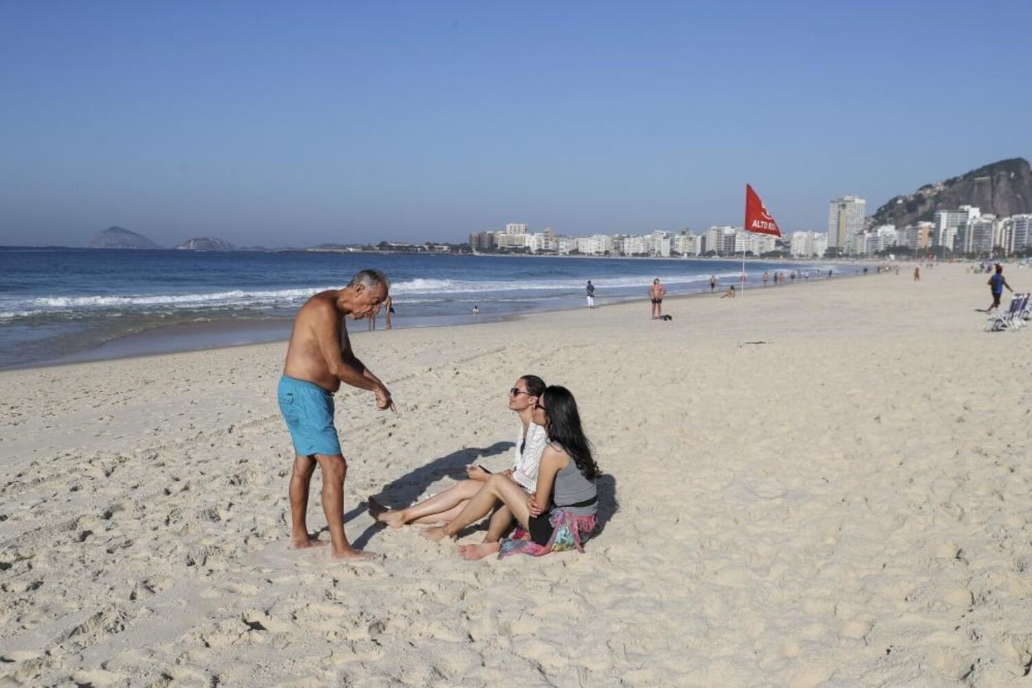 A presença do chefe de Estado português em Copacabana, numa manhã de inverno no Brasil, surpreendeu as pessoas que estavam naquela parte da praia. Algumas aproximaram-se e pediram fotografias.