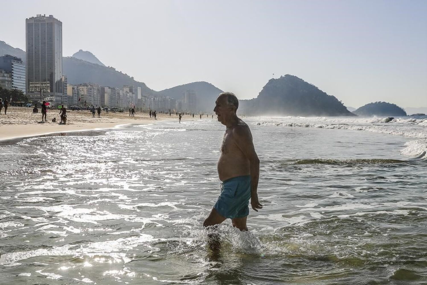 O Presidente da República mergulhou juntamente com o ministro da Cultura, Pedro Adão e Silva, nas águas de Copacabana, onde nadaram durante cerca de quinze minutos, acompanhados por dois seguranças.
