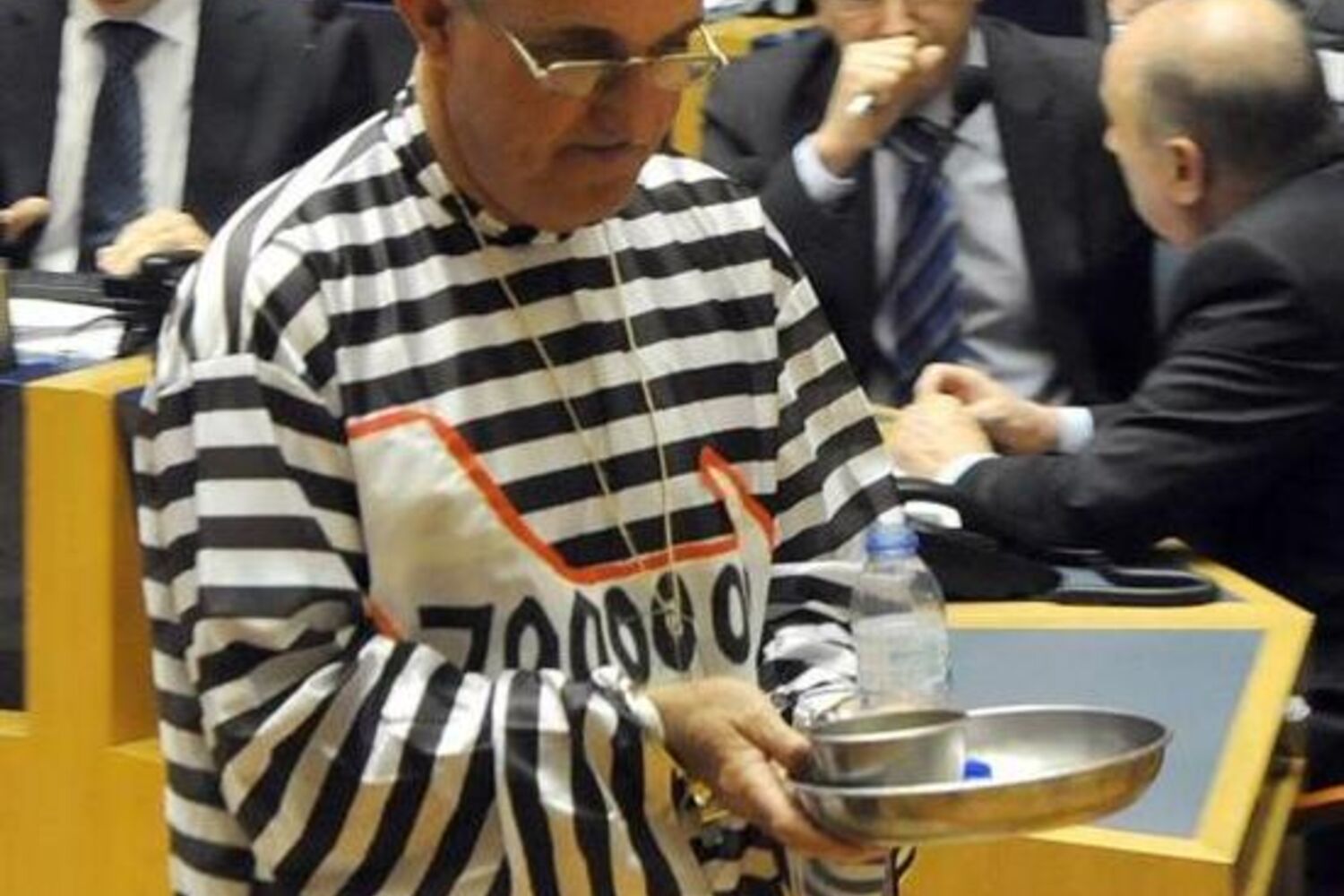 O deputado do PTP/Madeira, José Manuel Coelho, vestiu-se esta terça-feira de ‘irmão metralha’ para participar nos trabalhos parlamentares regionais, depois de ter sido condenado a pena de prisão suspensa.