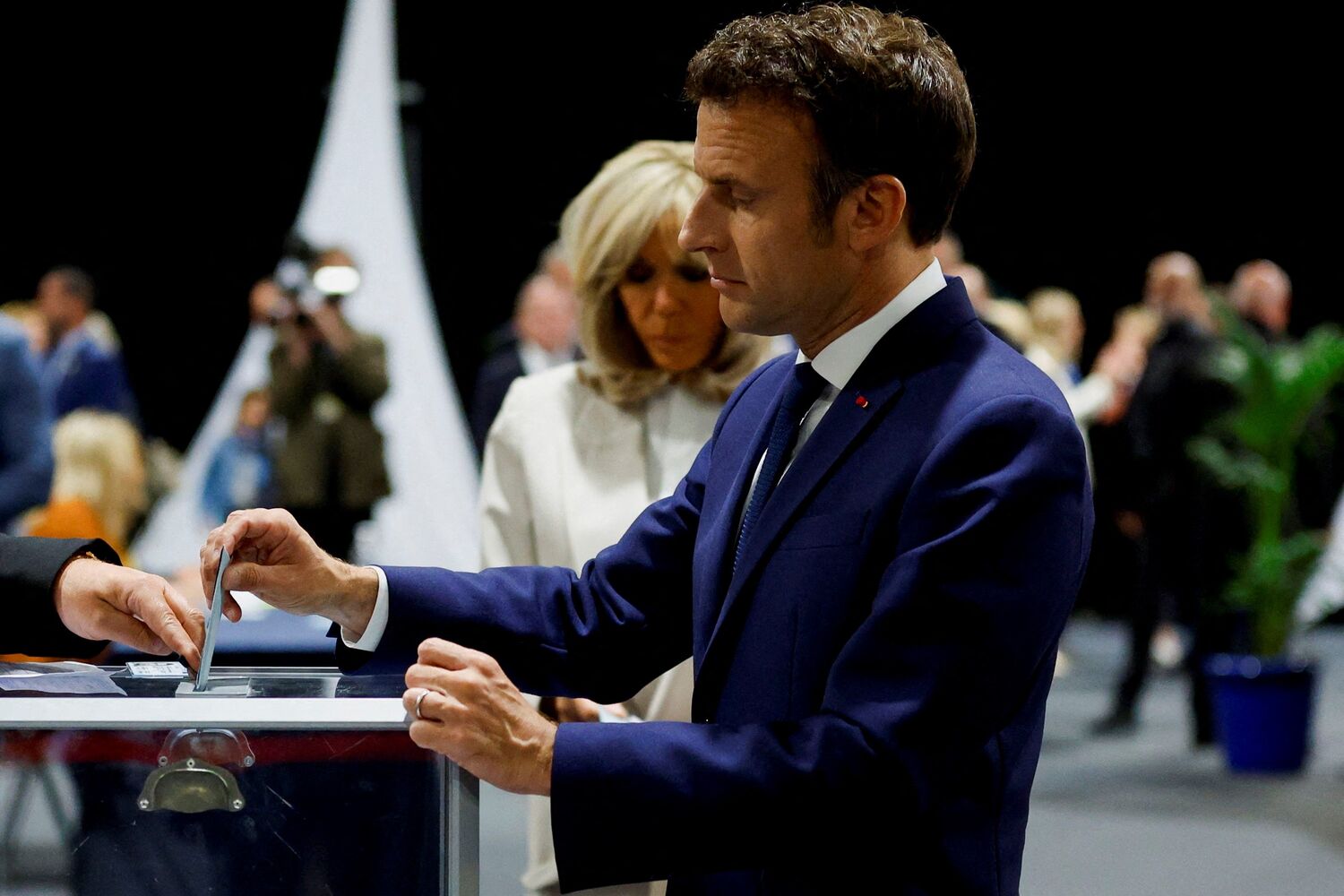 Emmanuel Macron, favorito à reeleição na segunda volta das eleições presidenciais francesas deste domingo, face à candidata da extrema-direita Marine Le Pen, votou pelas 13:10 locais (12:10 em Lisboa) na localidade de Le Touquet, acompanhado da mulher.