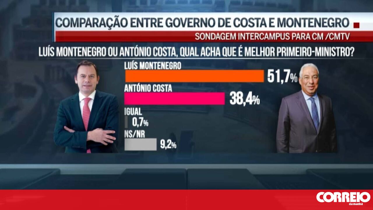 Os portugueses consideram o Governo anterior, tomado como um todo, melhor do que o atual. Já quando se trata de apontar o melhor primeiro-ministro, escolhem Luís Montenegro, em detrimento de António Costa, de acordo com o barómetro da Intercampus para o CM/CMTV e ‘Jornal de Negócios’.