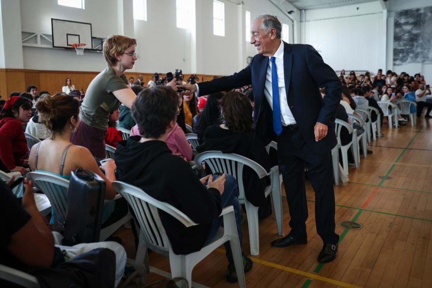 Depois, propôs ainda a esse grupo de alunos que abandonassem o pavilhão, o que não se verificou. Logo de seguida, o chefe de Estado retomou a palavra e pediu para os que falaram uma salva de palmas.