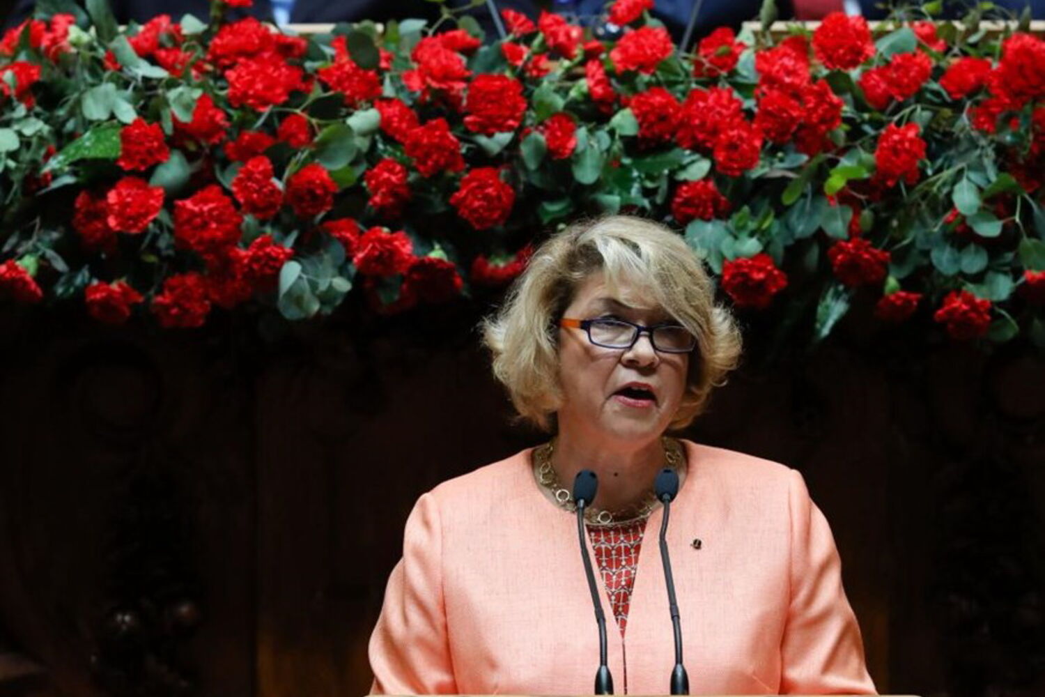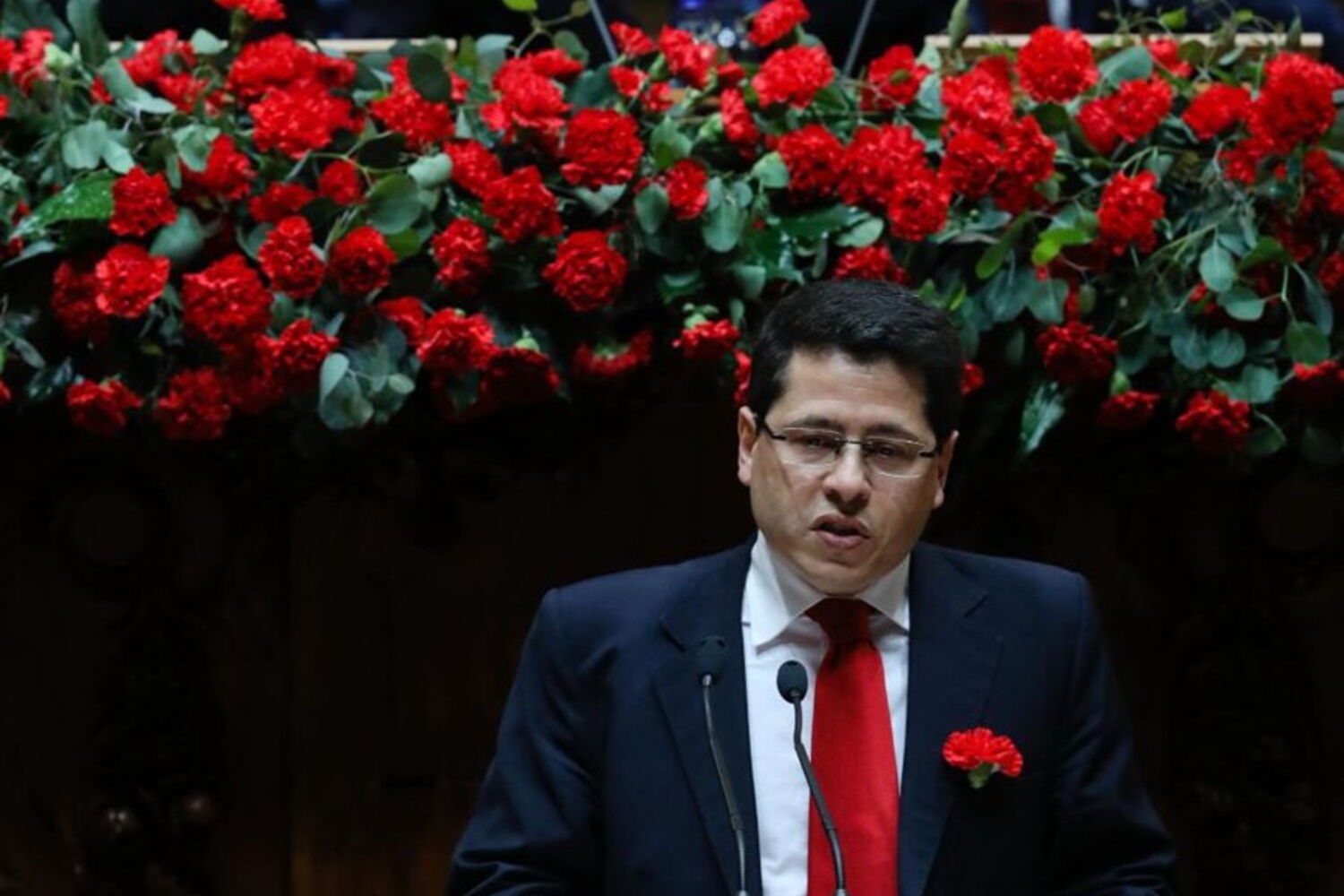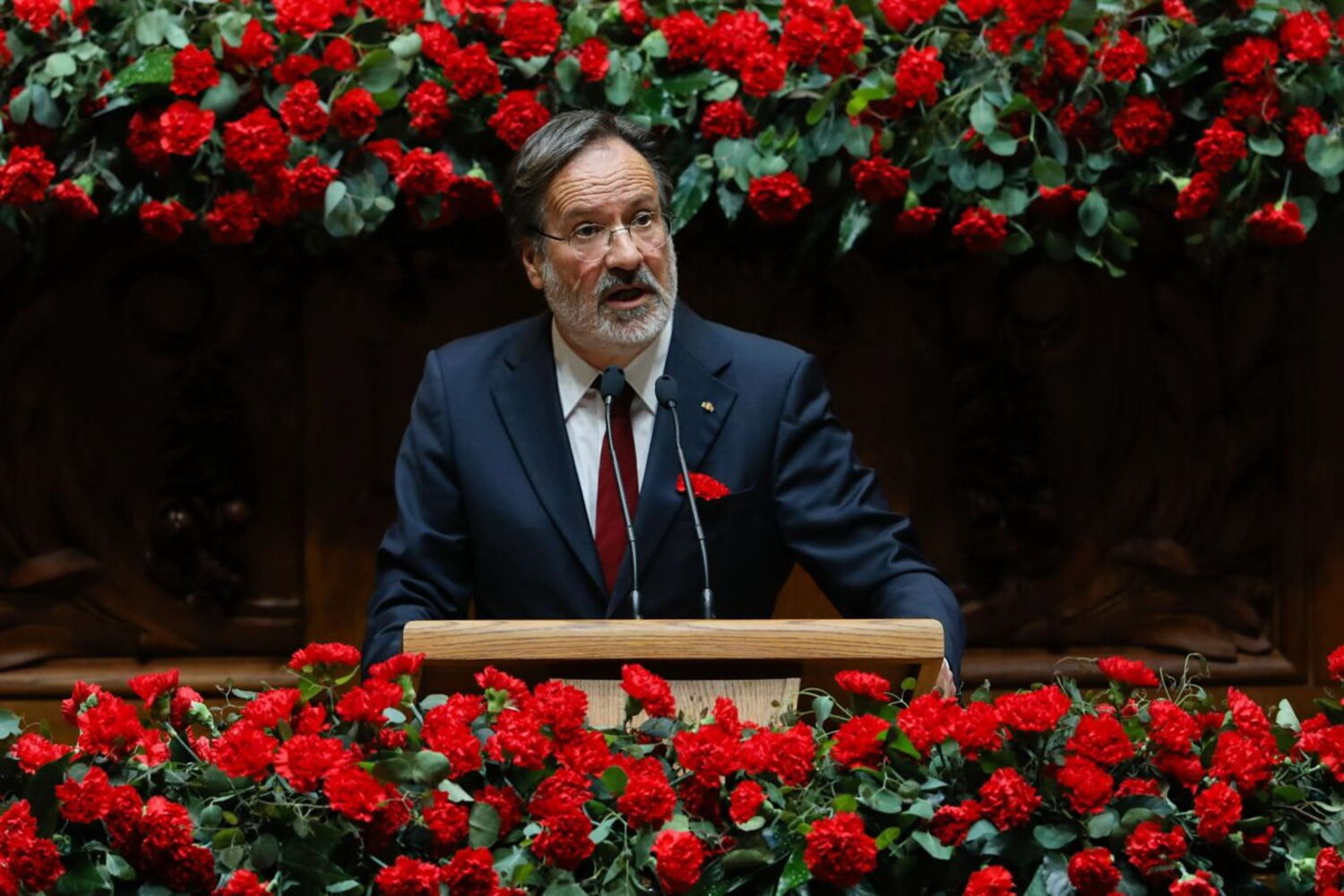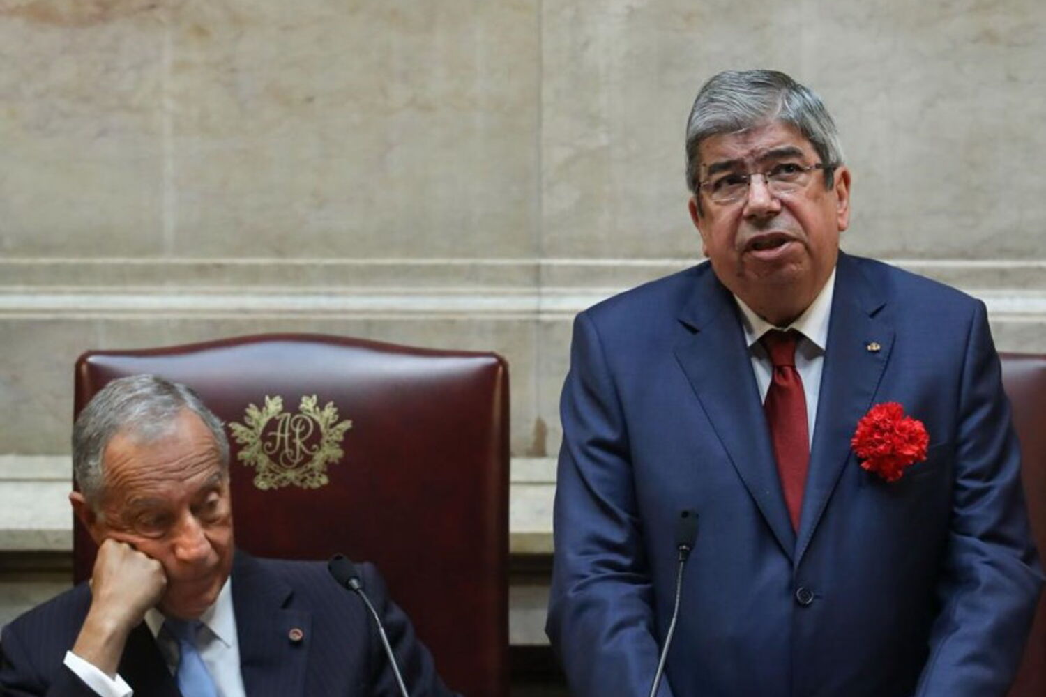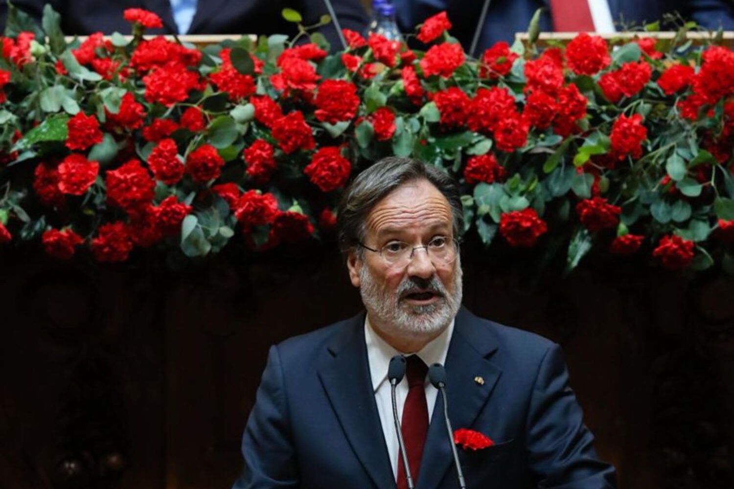 Ao percorrer os corredores do parlamento, Marcelo Rebelo de Sousa mostrava já um cravo vermelho na mão, com o qual entrou na sala do hemiciclo, tal como no ano passado, o primeiro em que esteve nesta cerimónia enquanto Presidente.