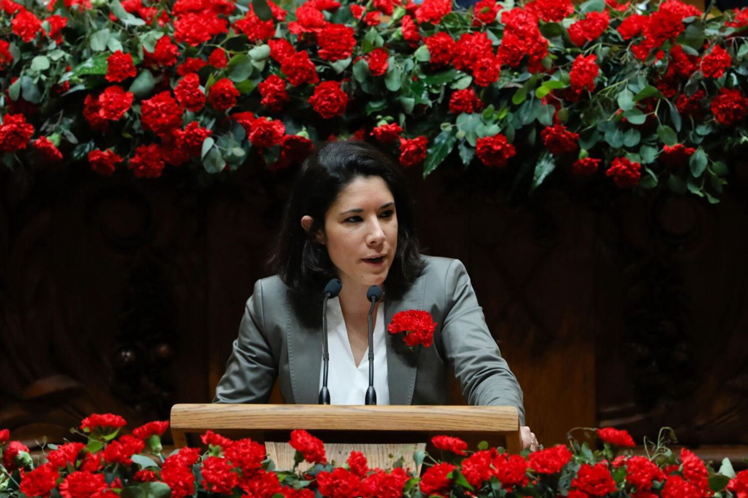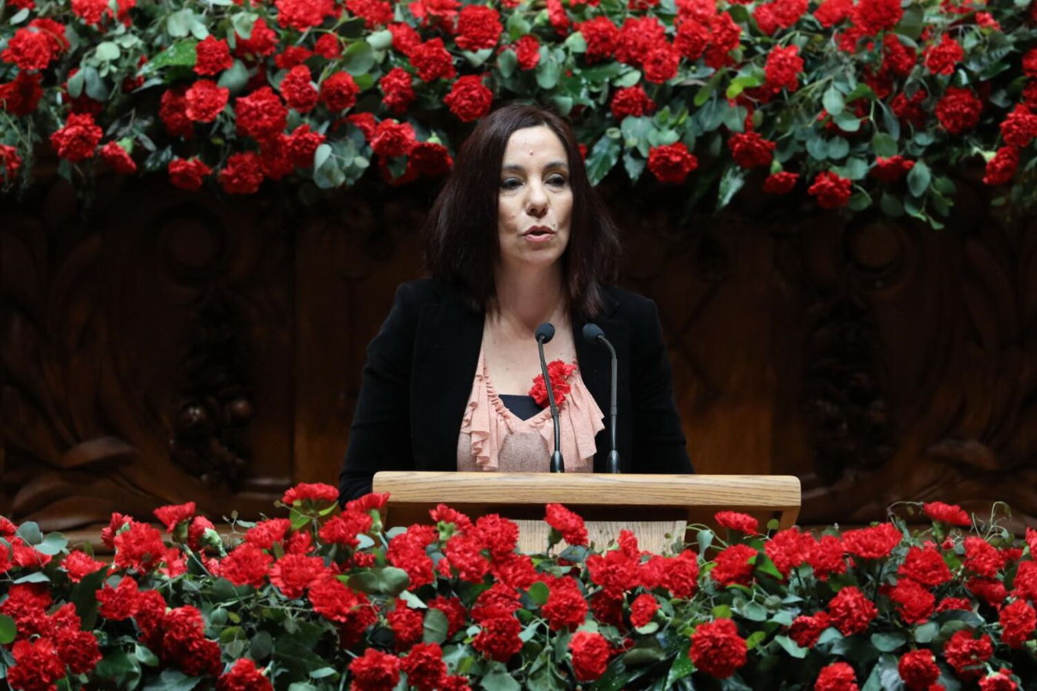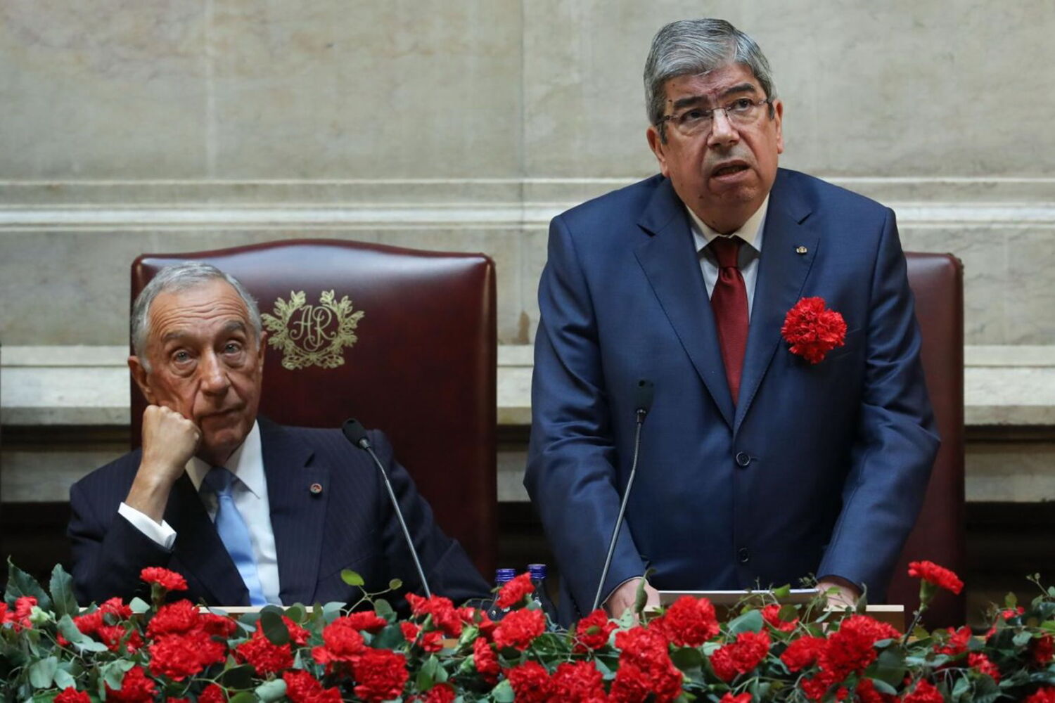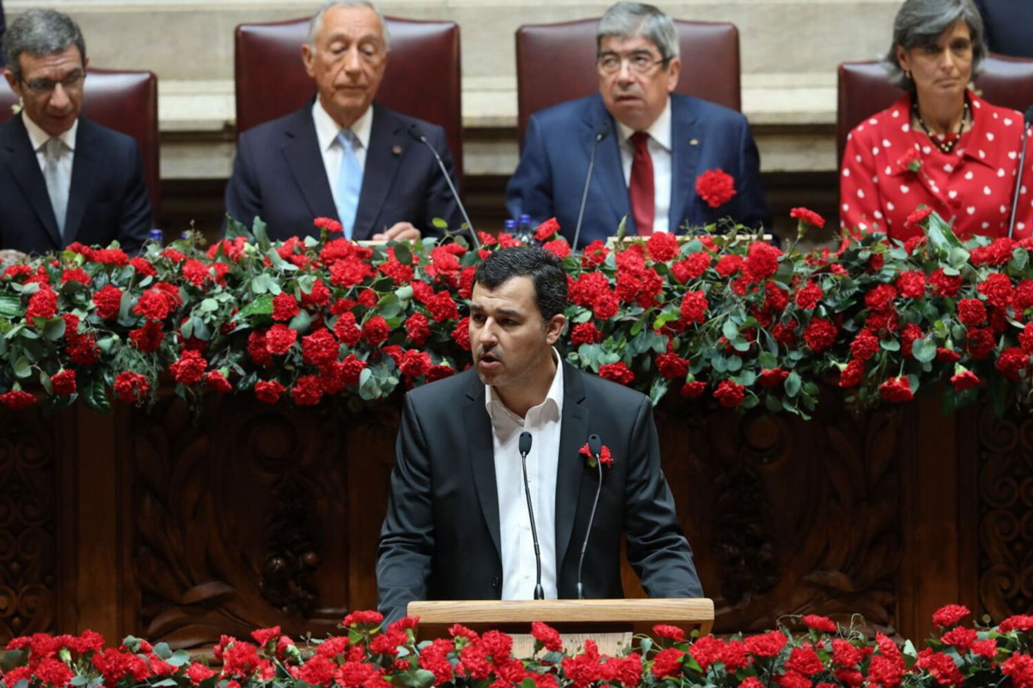Marcelo inaugura sessão solene do 25 de abril de cravo na mão