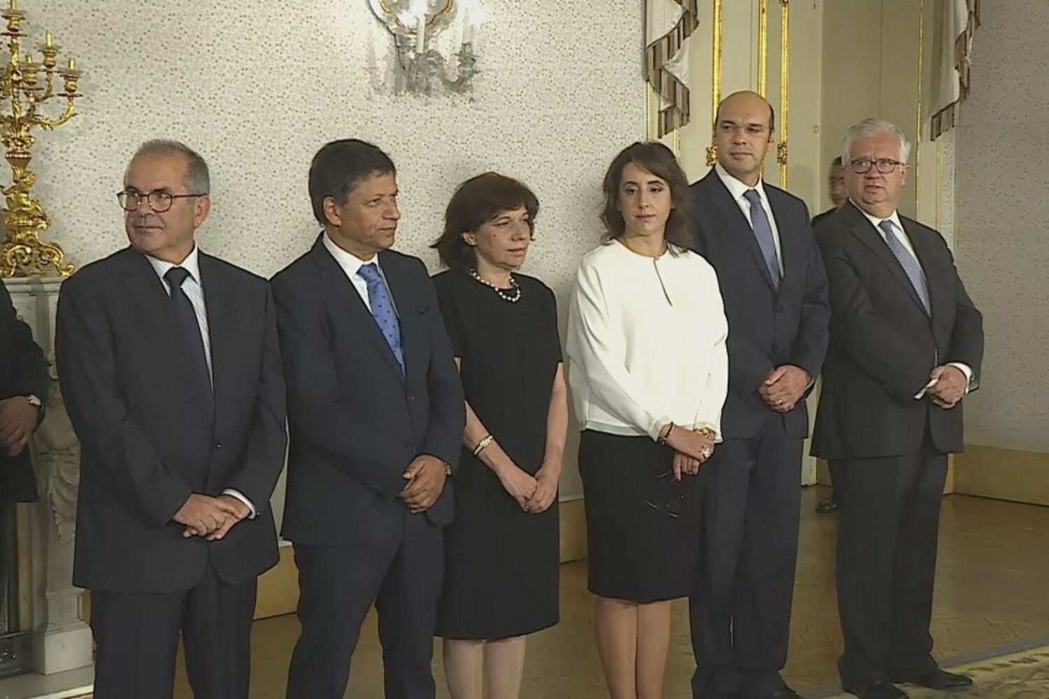 No final da cerimónia, após cumprimentar os novos governantes, Marcelo Rebelo de Sousa, Ferro Rodrigues e António Costa atravessaram a sala, cumprimentando os novos elementos do executivo, mas também quem saiu do Governo - Constança Urbano de Sousa e Jorge Gomes.