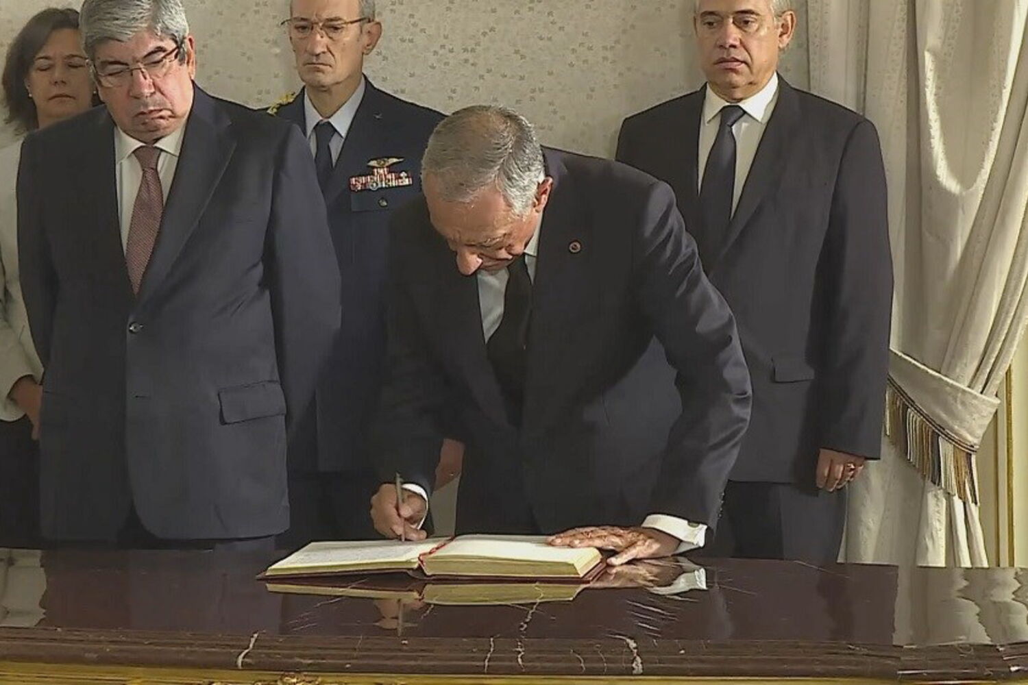Assistiram ainda a este ato no Palácio de Belém a secretária-geral adjunta do PS, Ana Catarina Mendes, o vice-presidente da bancada socialista Pedro Delgado Alves e o deputado e antigo secretário de Estado da Presidência Vitalino Canas.