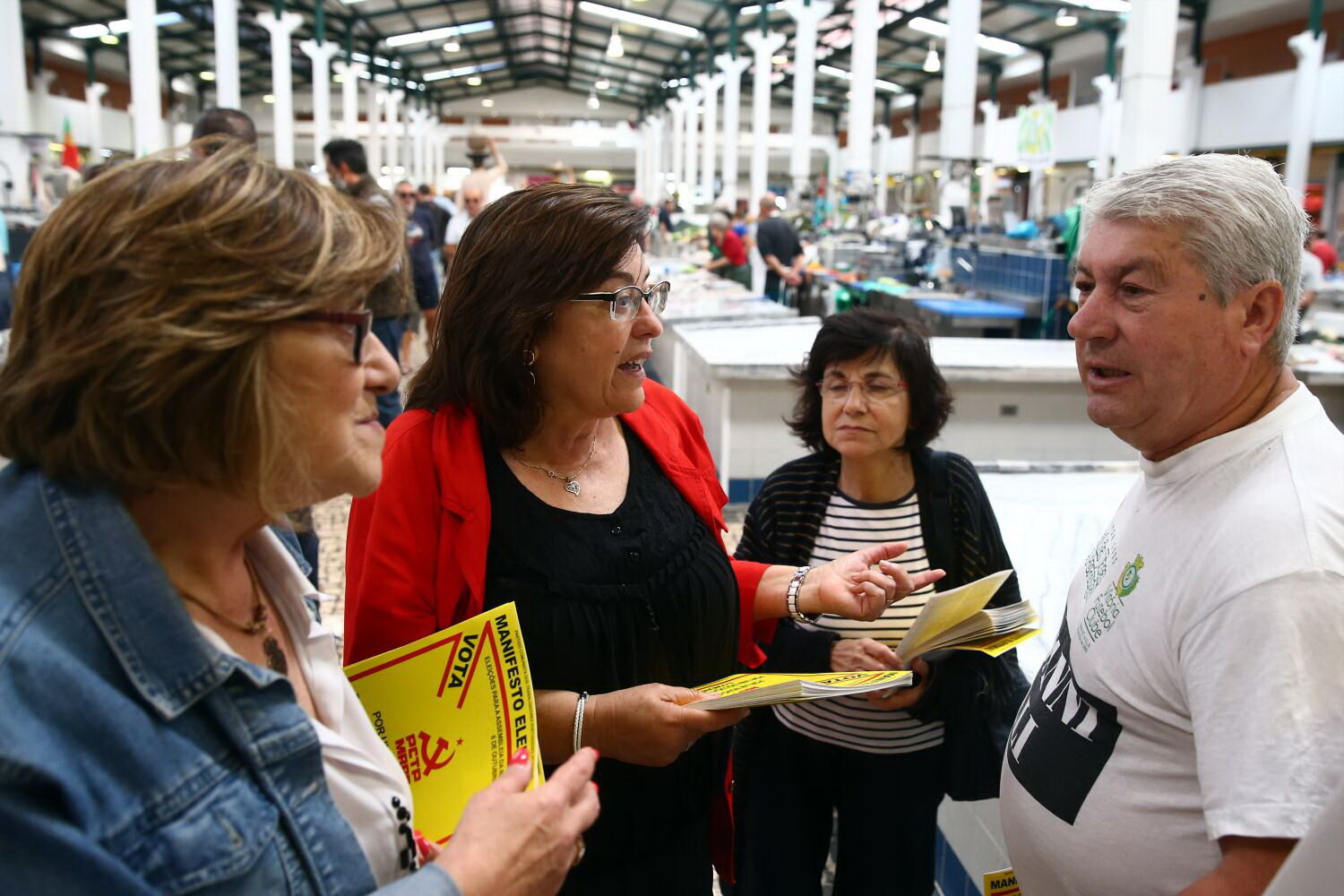 A principal candidata do partido fortemente ligado ao nome do recentemente falecido Arnaldo Matos, tem 64 anos, é professora aposentada do ensino secundário e militante desde antes do 25 de Abril. Também o cabeça de lista pelo distrito de Setúbal, Leonel Coelho, reformado, conta longa atividade militante. A meia dúzia de ativistas em campanha incluiu ainda o candidato Fernando Firmino, que nas Autárquicas de 2017 liderou a lista PCTP-MRPP à câmara de Setúbal e atacou a presidente, eleita pela CDU-PCP, de conduzir uma "política reacionária na câmara". Ele explica: "Essa gente defende geringonças. Sofri com a traição do sindicato deles na luta das Minas da Panasqueira."