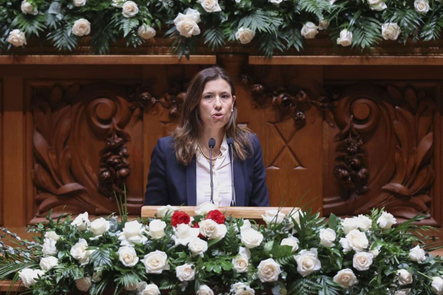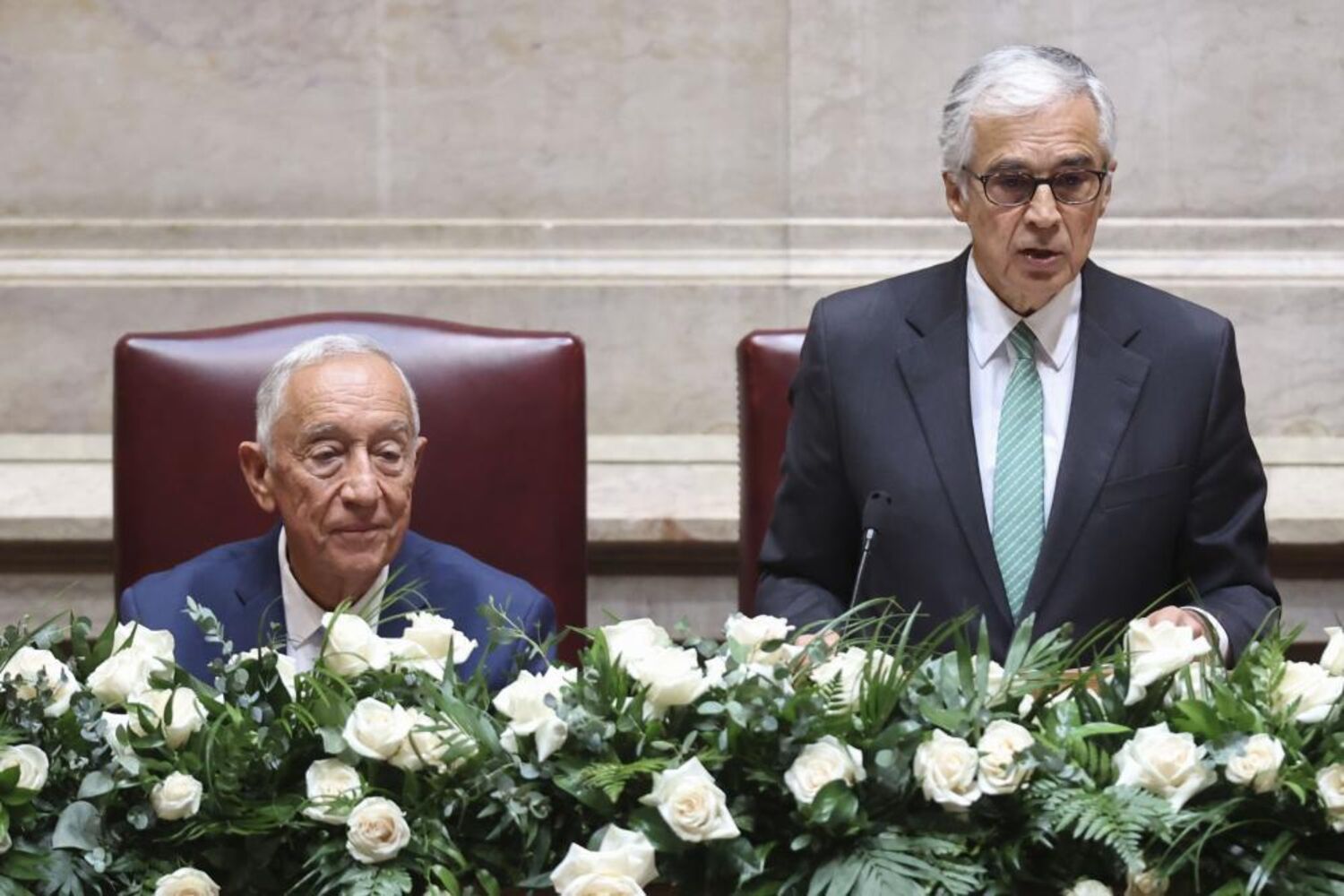 Cerimónia na Assembleia da República contou com vários convidados e discursos. Parlamento foi decorado com rosas brancas, mas partidos de esquerda levaram cravos vermelhos.