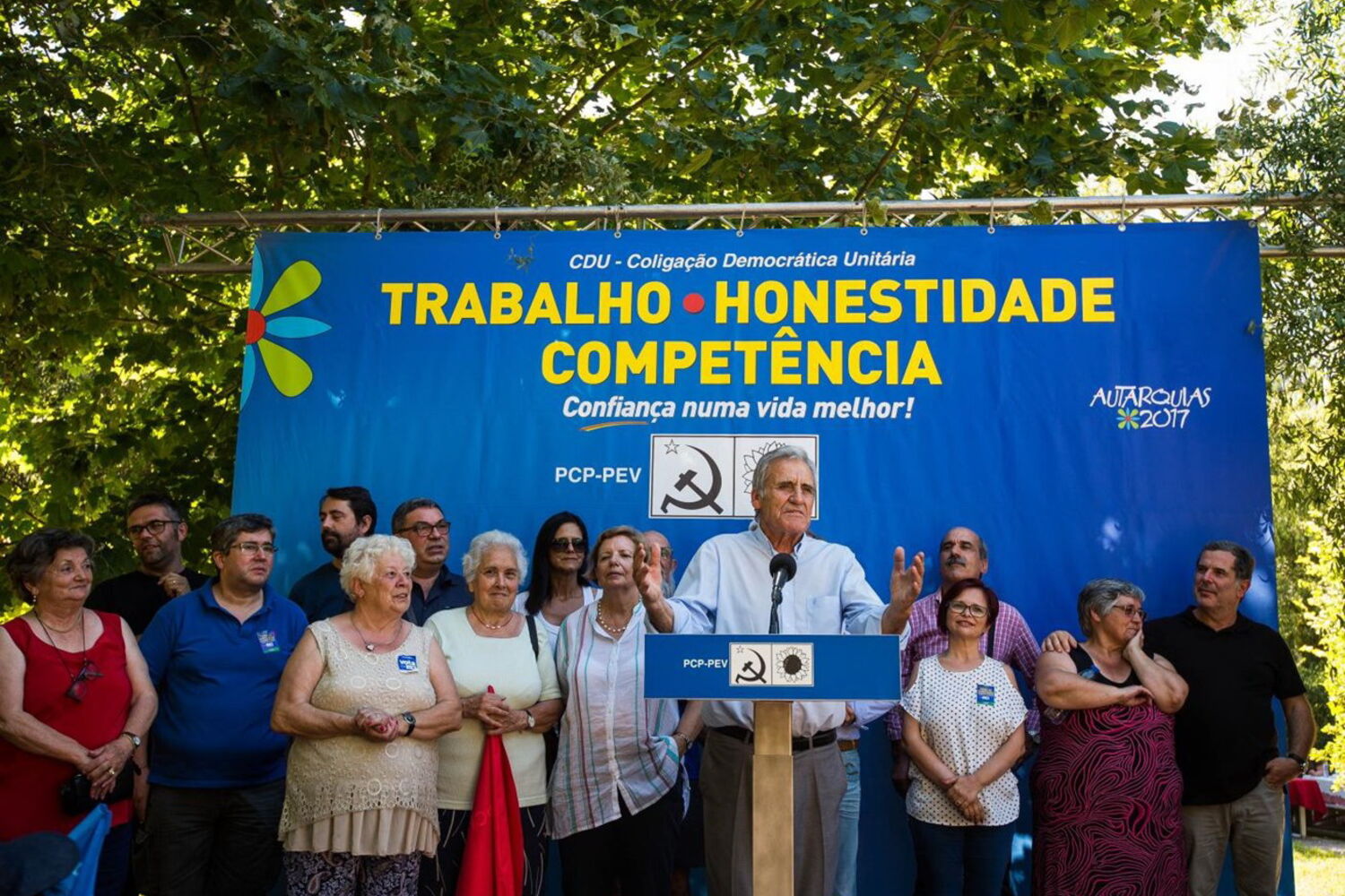 Perante centenas de apoiantes na Praça Central da Torre da Marinha, no Seixal, o líder comunista lembrou que o PCP tem vindo a denunciar a "extraordinária degradação do serviço público de transportes que foi particularmente agravada durante o último Governo PSD/CDS e a questionar o governo minoritário do PS, apresentando também propostas que se têm revelado cada vez mais necessárias e urgentes".
