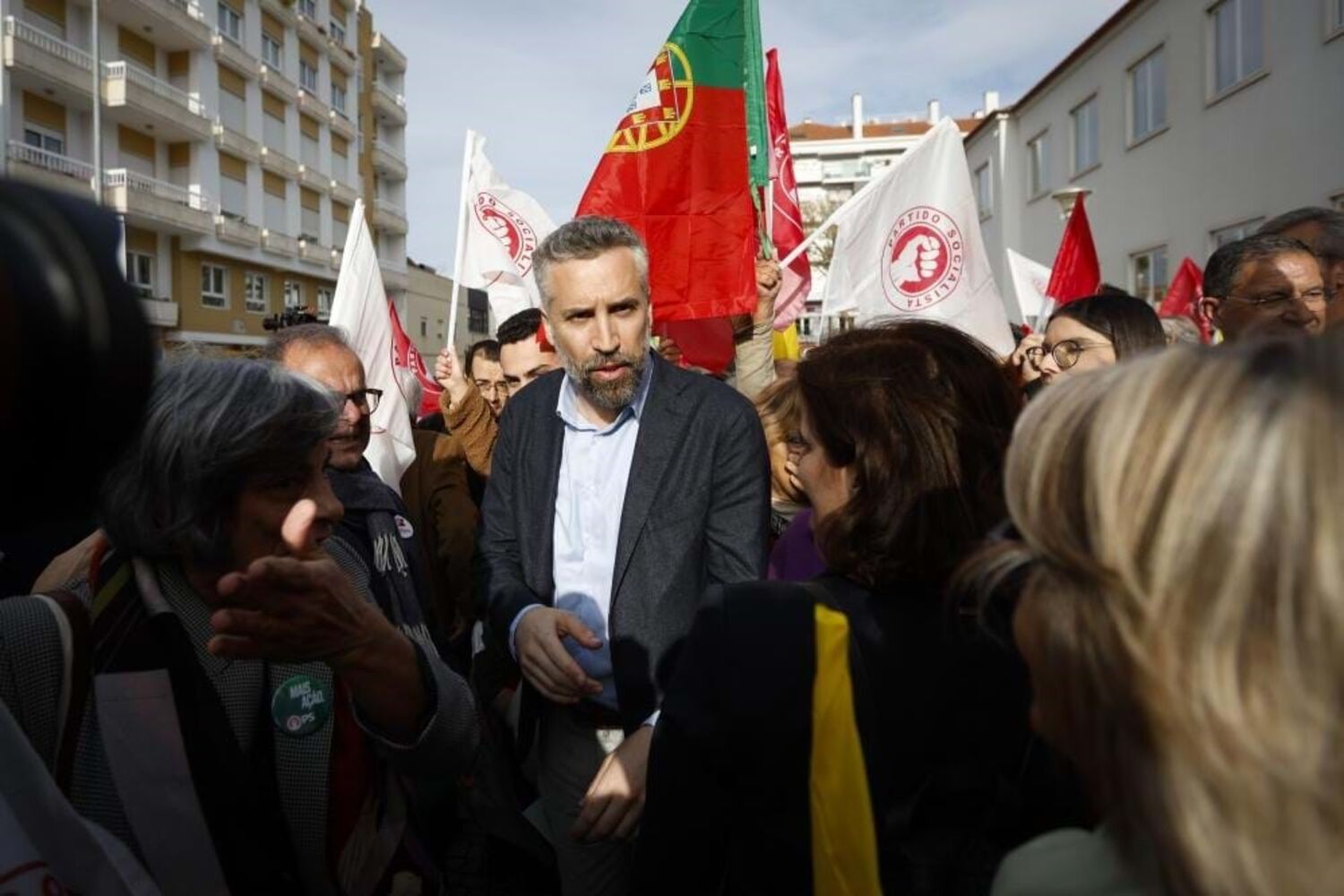 Na arruada, em Torres Vedras, além de palavras de ordem de apoio a Pedro Nuno Santos, gritou-se "Mariana vai em frente tens aqui a tua gente" - Mariana, a ministra da Presidência do atual Governo.