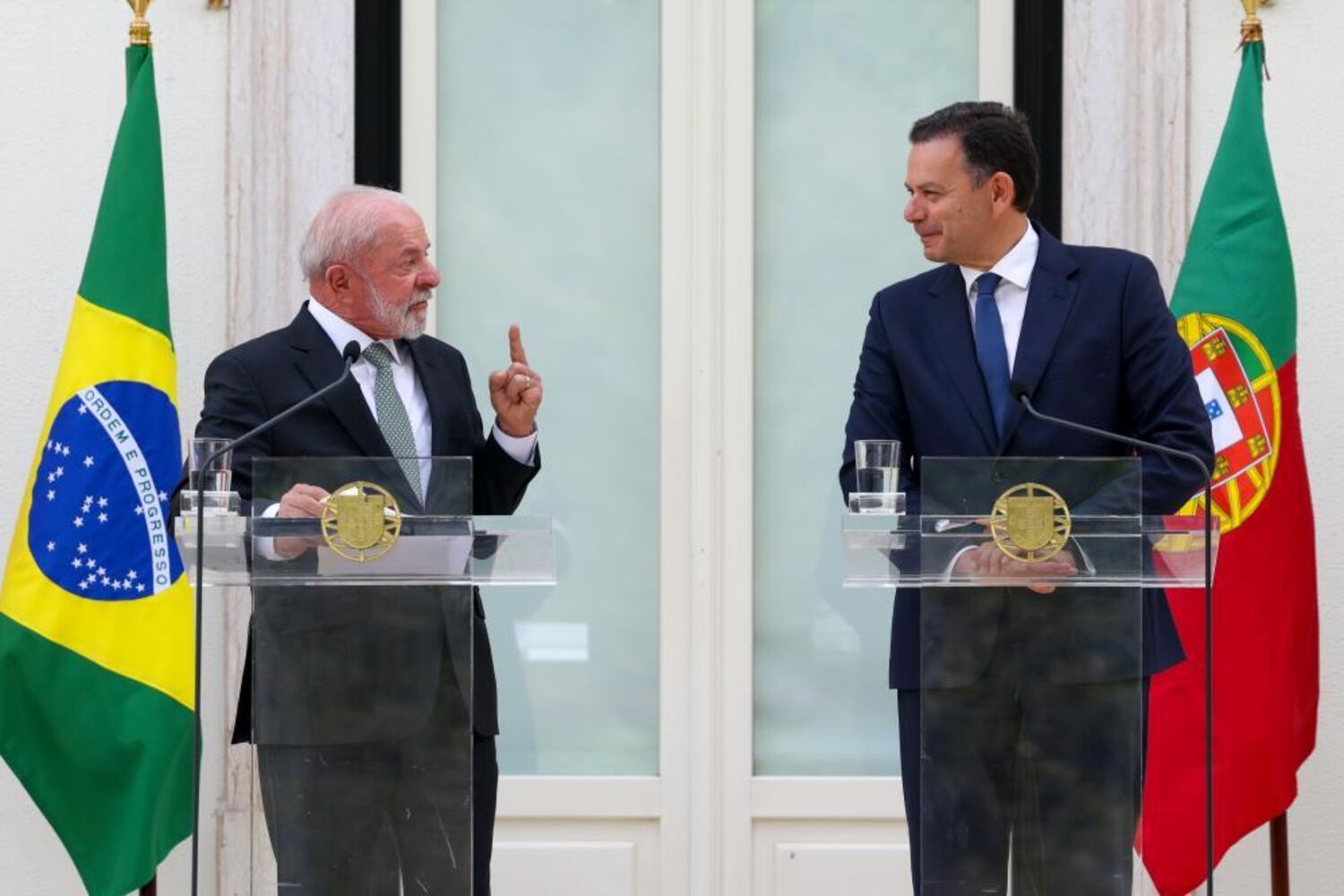 Luís Montenegro falava ao lado do Presidente do Brasil, Lula da Silva, após um encontro entre os dois de cerca de uma hora na residência oficial do primeiro-ministro português.