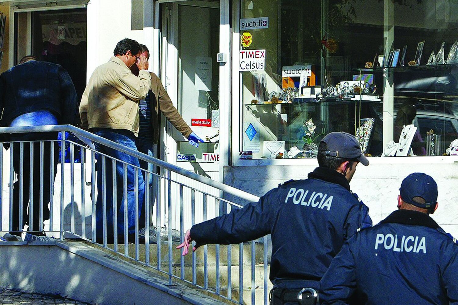 Valdemar Faria Silva, de 40 anos, é o proprietário da ourivesaria Figueirinha. De dentro do estabelecimento, viu Orlando trancar a porta com o taco de basebol e a puxar com todas as forças para impedir que os quatro assaltantes saíssem. "Estavam os quatro encapuzados, armados com duas caçadeiras e duas pistolas. Um encostou-me uma caçadeira à cabeça, enquanto os outros partiram as montras e roubavam peças em ouro", explicou o ourives ao CM.