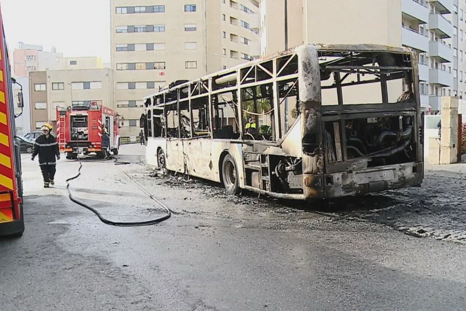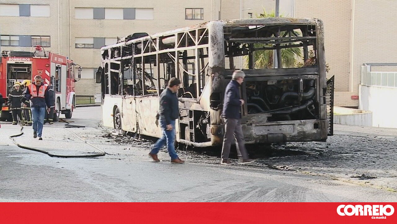 Veja as imagens do autocarro a arder em Rio Tinto