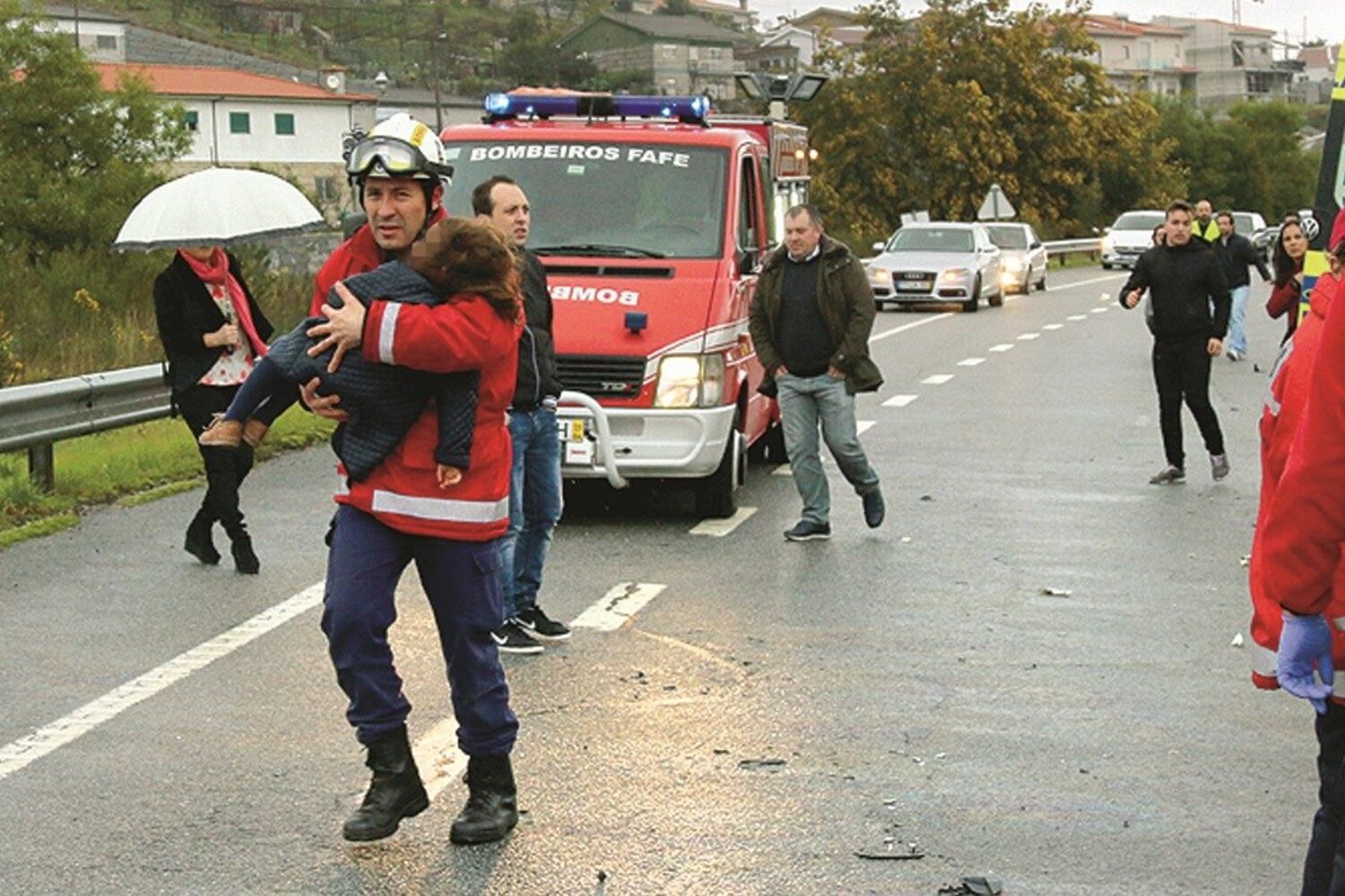 "Quando chegámos, deparámos com uma vítima em paragem cardiorrespiratória, iniciámos as manobras de suporte básico de vida, mas revelaram-se infrutíferas e o óbito acabou por ser declarado", referiu ao CM Gilberto Gonçalves, comandante dos Bombeiros de Fafe. Os sete feridos foram todos socorridos no local, de imediato, e depois transportados para os hospitais de Guimarães e Braga.