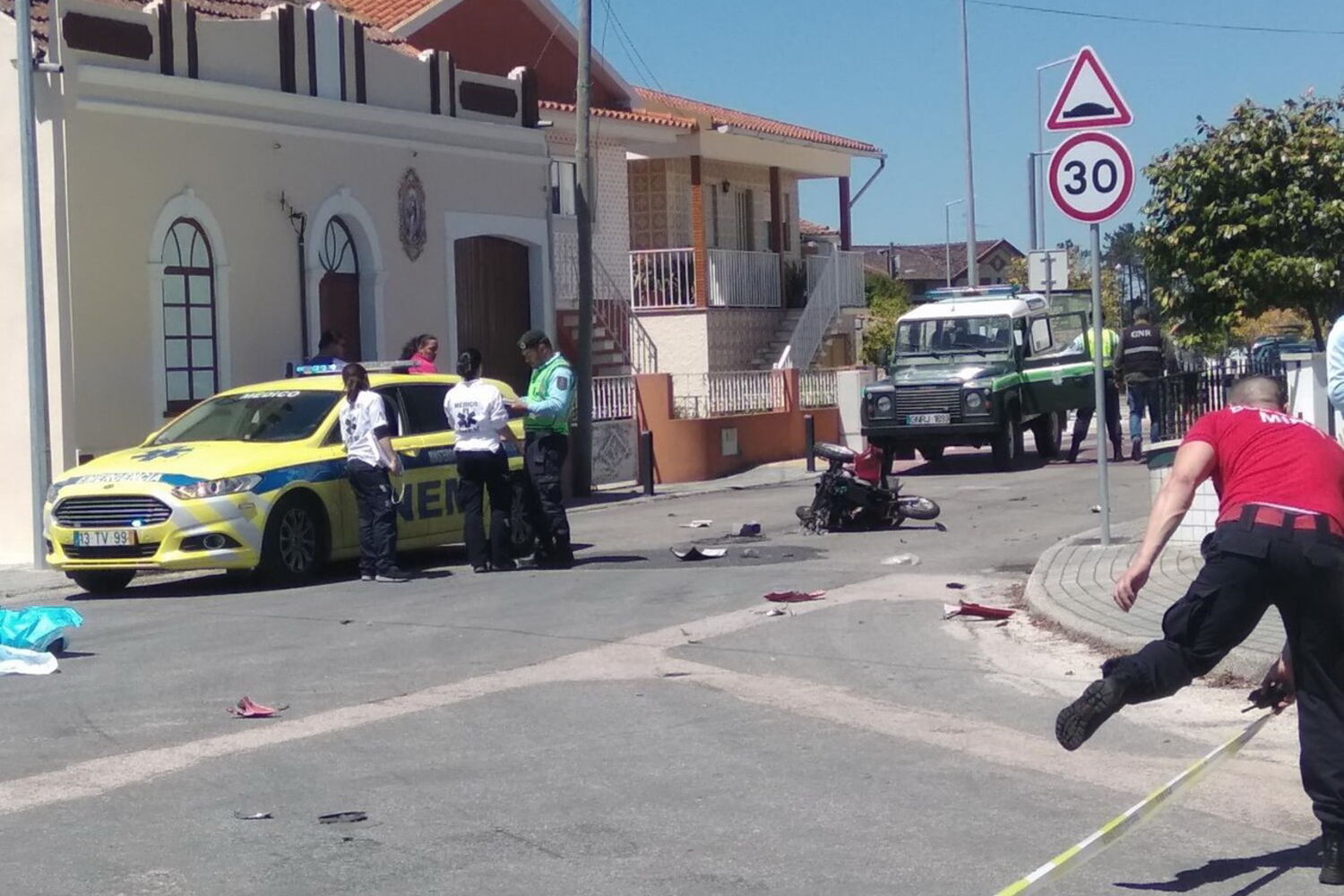 A viatura, conduzida por uma jovem de 22 anos, prosseguiu desgovernada e só parou cerca de 60 metros mais à frente, após ter embatido na parede de uma casa. A condutora, que reside numa outra localidade, sofreu ferimentos ligeiros e ficou em choque, tendo sido transportada para o Hospital de Aveiro.