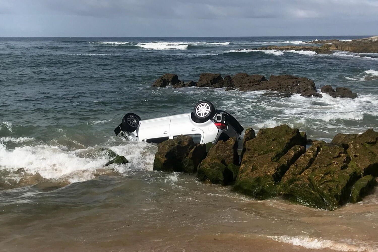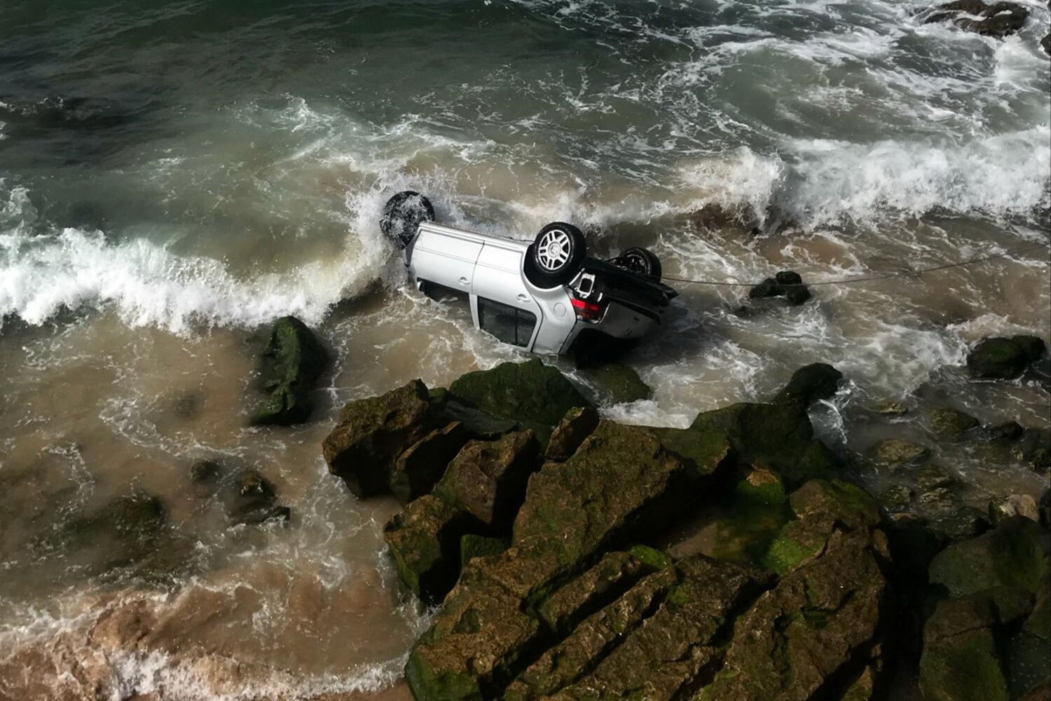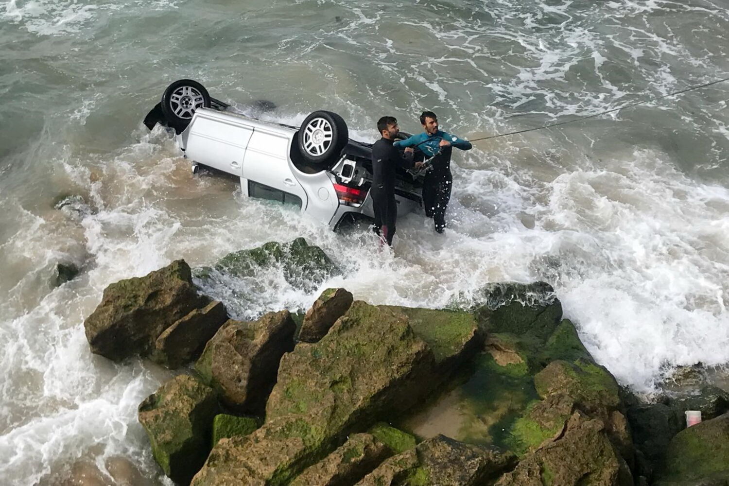 O motociclista e o pescador aperceberam-se do acidente, desceram até à praia, partiram o vidro do lugar do condutor e retiraram o jovem, de 20 anos, que estava no interior. Apesar do aparato, o condutor sofreu apenas escoriações na cabeça. Foi transportado para o hospital de Cascais.