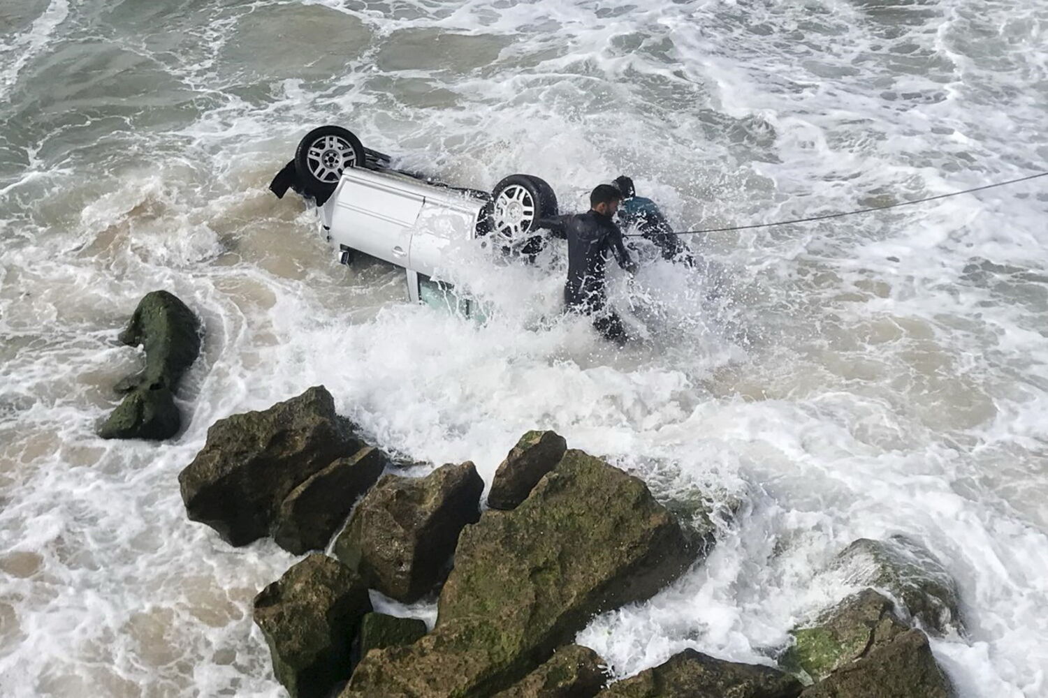 Foi necessário chamar uma grua para retirar o carro da zona de rochas, numa altura em que a viatura já estava parcialmente submersa. A Marginal chegou a estar cortada ao trânsito. A circulação foi restabelecida ao final da manhã.