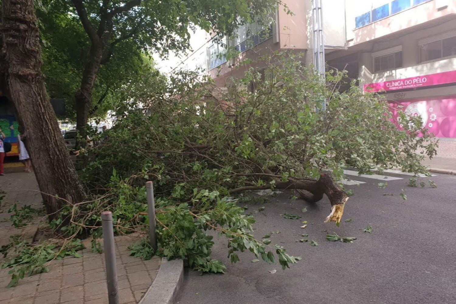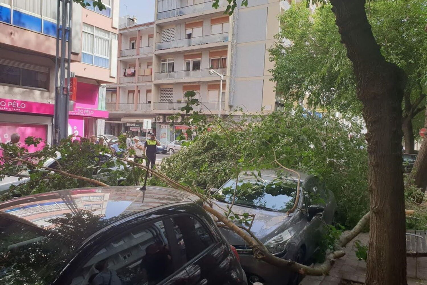 Uma árvore caiu esta segunda-feira na Avenida Grão Vasco, em Benfica, Lisboa, e danificou pelo menos duas viaturas.
