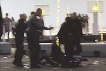 Esta vítima, "em grande sofrimento face à violência dos golpes que lhe foram infligidos", conseguiu levantar-se. Um segundo ofendido tentou levantá-lo, com a ajuda do terceiro arguido, que, entretanto, se aproximou deles.