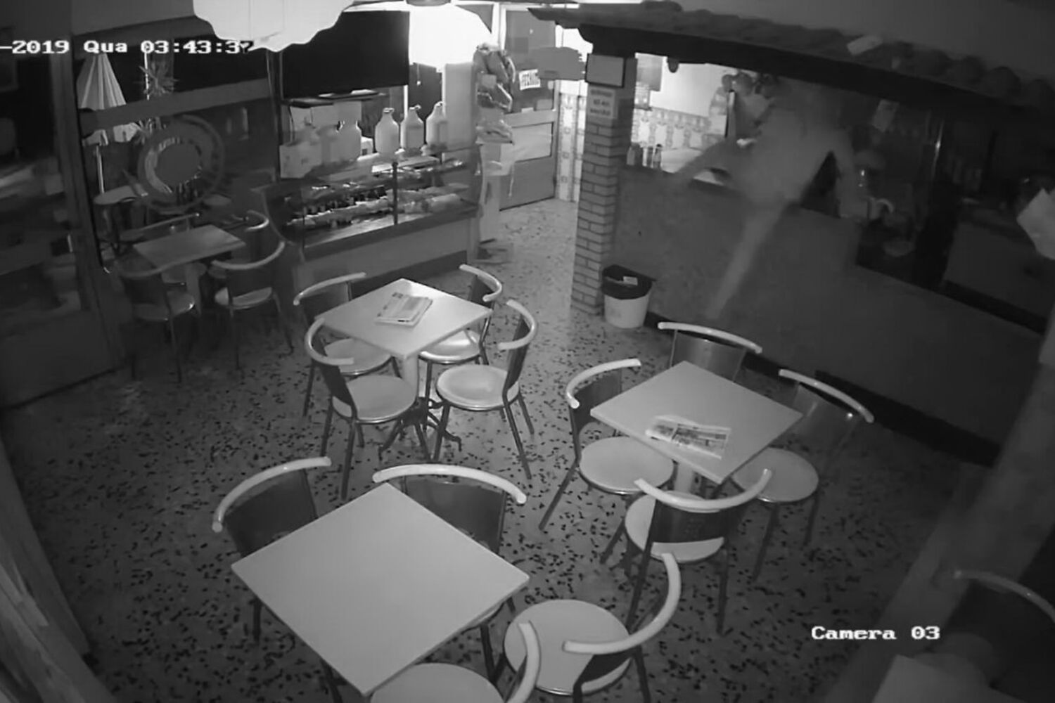 As imagens de videovigilância do café Cruz, junto à Estrada Nacional 103, em Encourados, Barcelos, mostram um grupo de quatro homens, três deles encapuzados, a arrombarem a porta do estabelecimento e, já no interior, a carregarem para um saco tudo o que apanham pela frente.