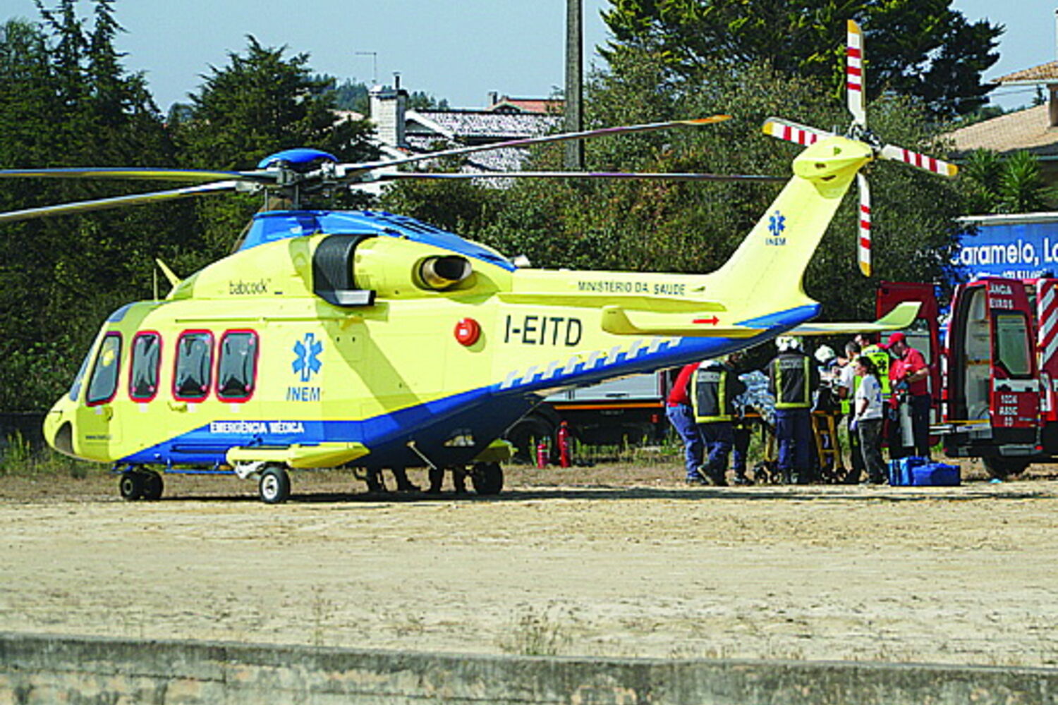 Os danos nas vias respiratórias causaram preocupações aos médicos do INEM no local, que decidiram acionar o helicóptero para transportar o ferido até ao Hospital de Santa Maria, em Lisboa.